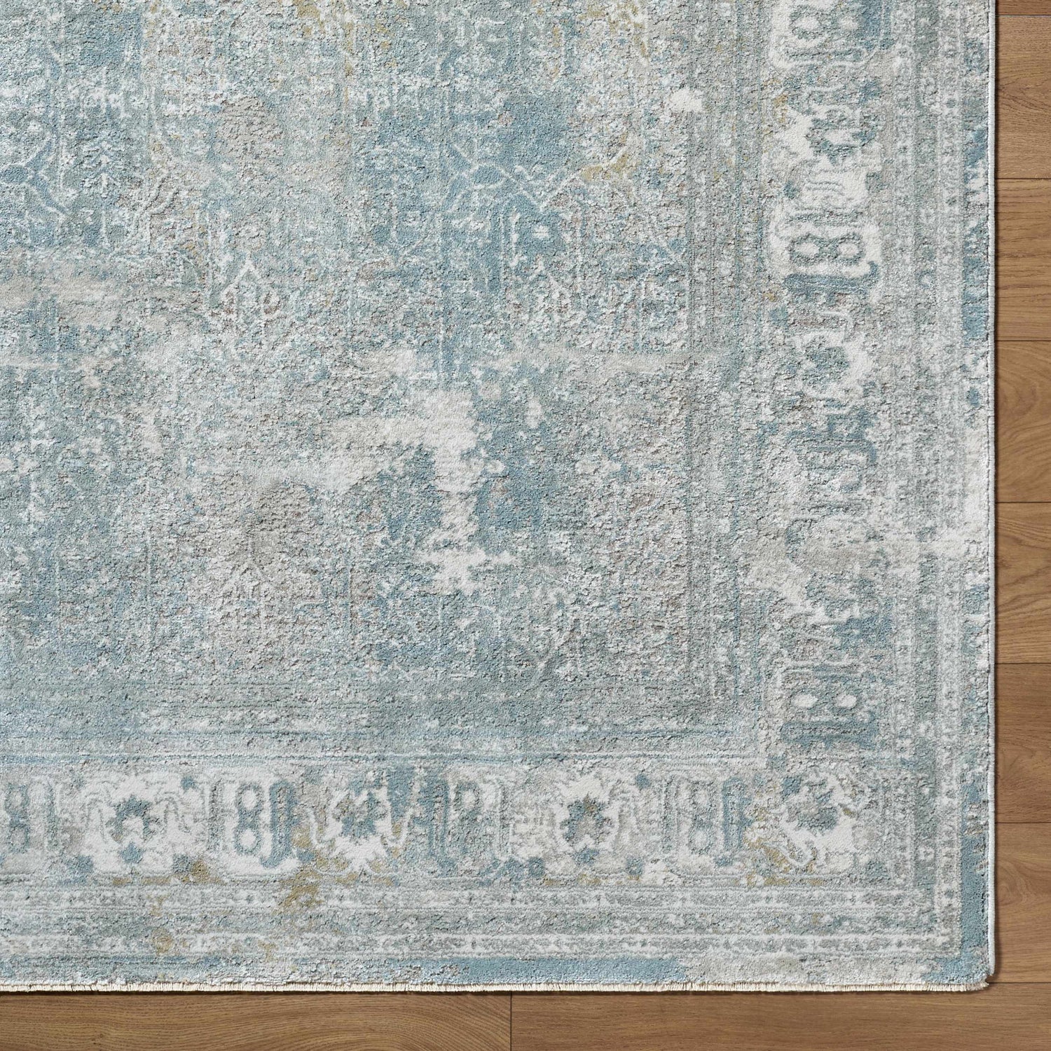 Introducing the Pryce Blue Gray Area Rug, a stunning statement piece for any room. This luxurious machine woven design is crafted of durable polypropylene and polyester to ensure long-lasting use. The medium pile provides a soft texture underfoot and also stands up to high traffic. Further adding to its elegant appeal, this rug features a fringe along the edge that will instantly elevate your decor. For best results, we recommend pairing with a rug pad (sold separately). Spot clean only with mild detergent for easy care and maintenance. Boasting an eye-catching style, the Pryce Blue Gray Area Rug will be sure to bring beauty and comfort into your home!