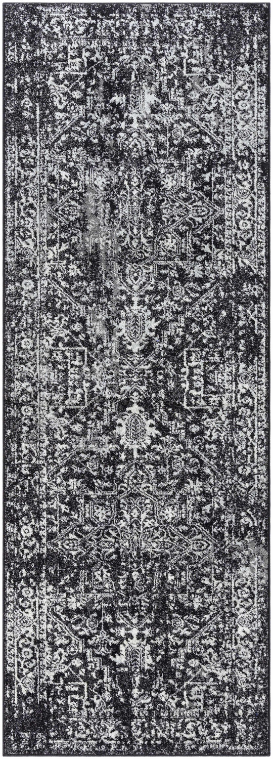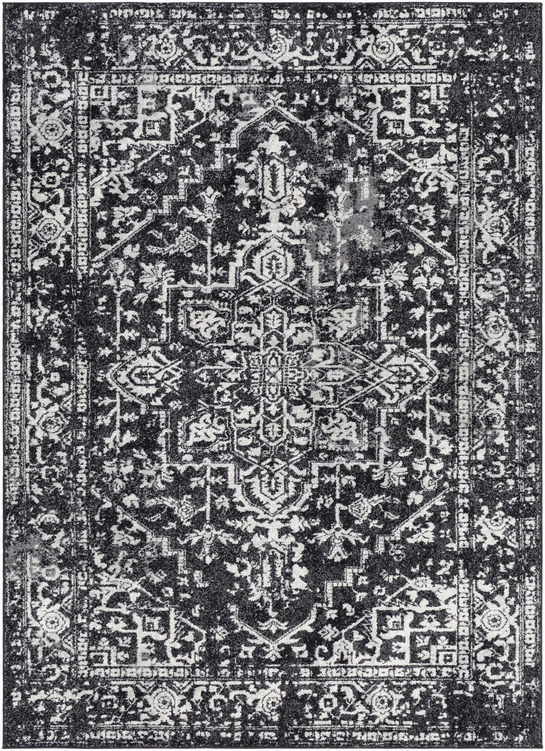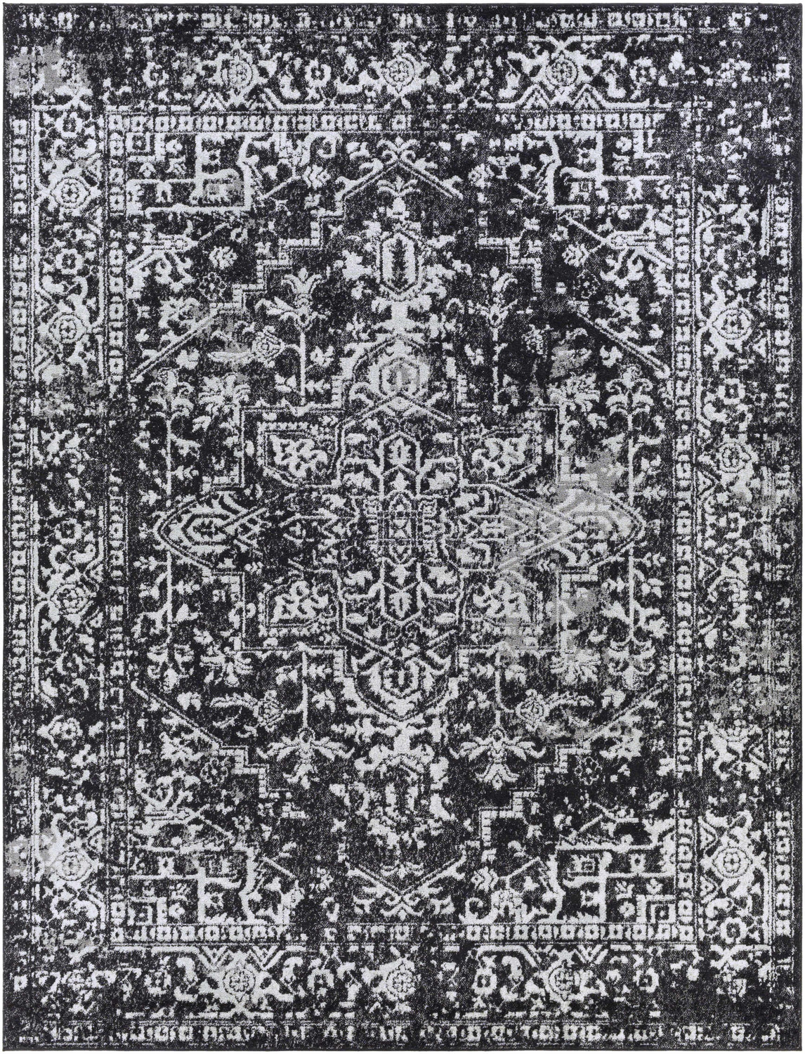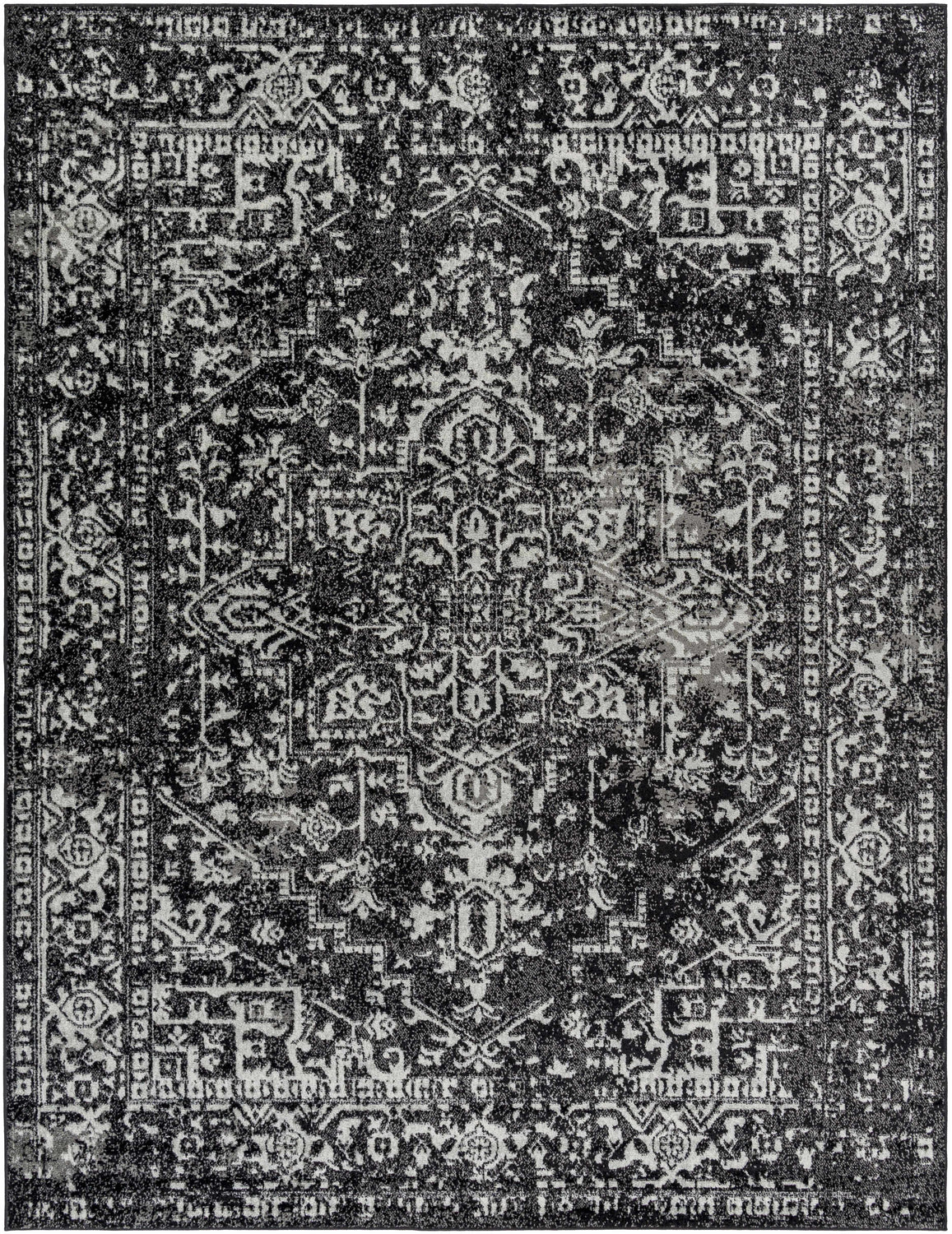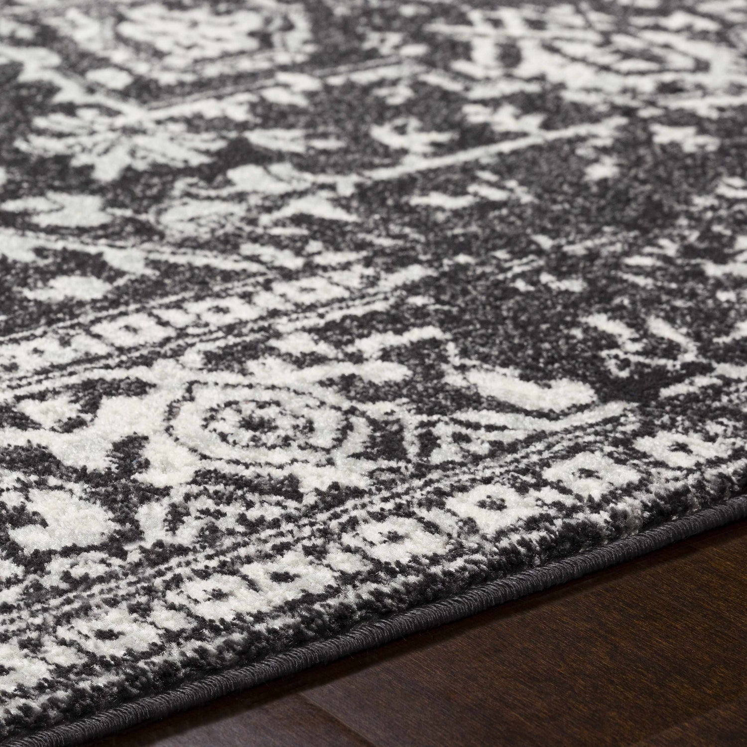 Introducing the Rachel Black Area Rug Collection, an updated traditional area rug that beautifully merges classic design with a contemporary twist. Perfect for high-traffic areas, this rug is made from durable polypropylene and expertly machine-woven in Turkey to ensure it withstands the test of time. Its medium pile offers a comfortable feel underfoot while maintaining its chic aesthetic. For optimum use, we recommend pairing this piece with a rug pad to prevent slipping or sliding. When it comes to maintenance, simply spot clean with mild detergent to keep this rug looking as stunning as the day you first laid eyes on it. Add an element of timeless elegance to your space with our Rachel Black Area Rug Collection area rug!