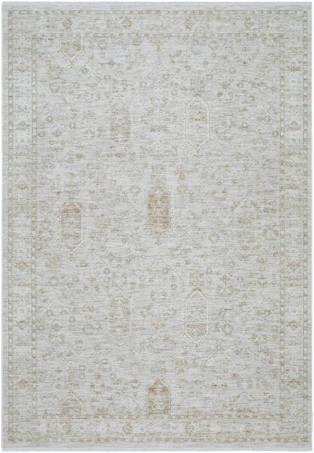 Add a chic touch to your living space with the Rafee Area Rug. This rug is beautifully machine woven in Turkey, demonstrating an alluring style that complements any decor. The medium pile makes it perfect for high-traffic areas, offering the ideal blend of comfort and durability. An added fringe detail lends an extra dash of elegance to this piece. Made entirely of polyester, it is easy to maintain - just spot clean with mild detergent when needed. For best results and longevity, we recommend using this rug with a rug pad. With its stunning aesthetics and practical features, the Rafee Area Rug is sure to enhance the look and feel of your home.