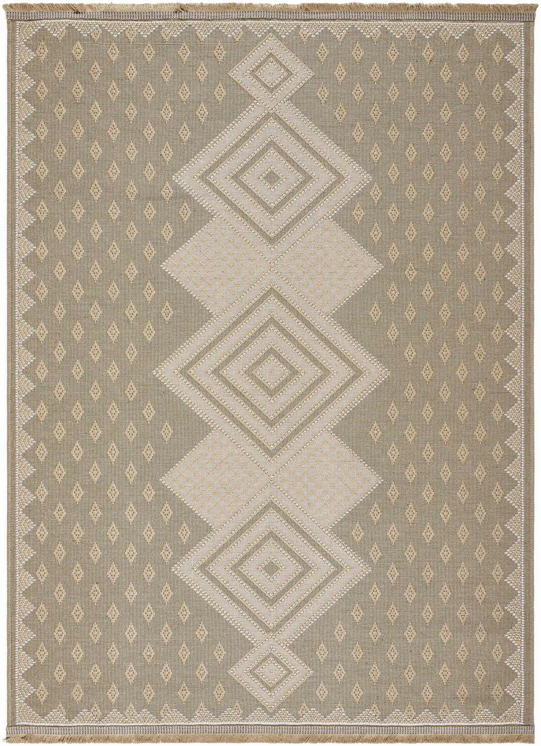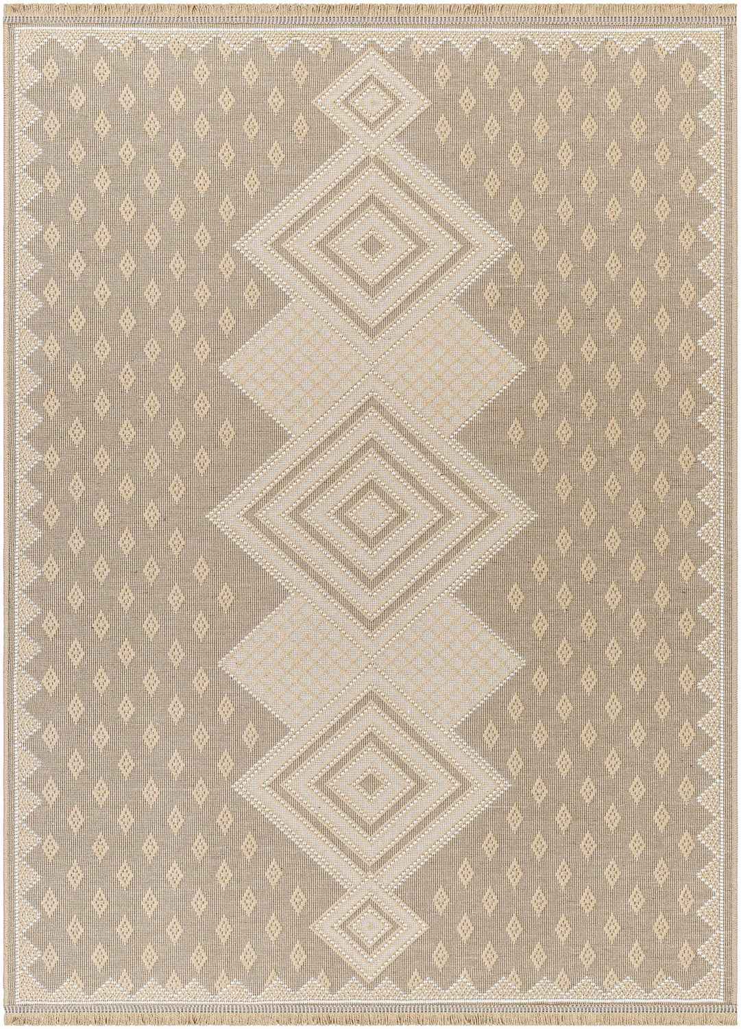 Introducing the "Ragni Washable Jute Rug" area rug, a stunning addition to any space that effortlessly marries style and durability. Manufactured in Turkey and machine woven with a blend of Jute and Cotton, this rug is designed to withstand high traffic areas while maintaining its aesthetic appeal. This no-pile rug showcases an intricate design framed by charming fringe details, adding a unique touch to your decor. It's recommended for use with a rug pad for added stability. With maintenance as simple as machine washing in cold water on normal cycle using mild detergent, it?s as practical as it is beautiful. Avoid bleaching or dry cleaning; just tumble dry on medium heat to keep its charm intact.
