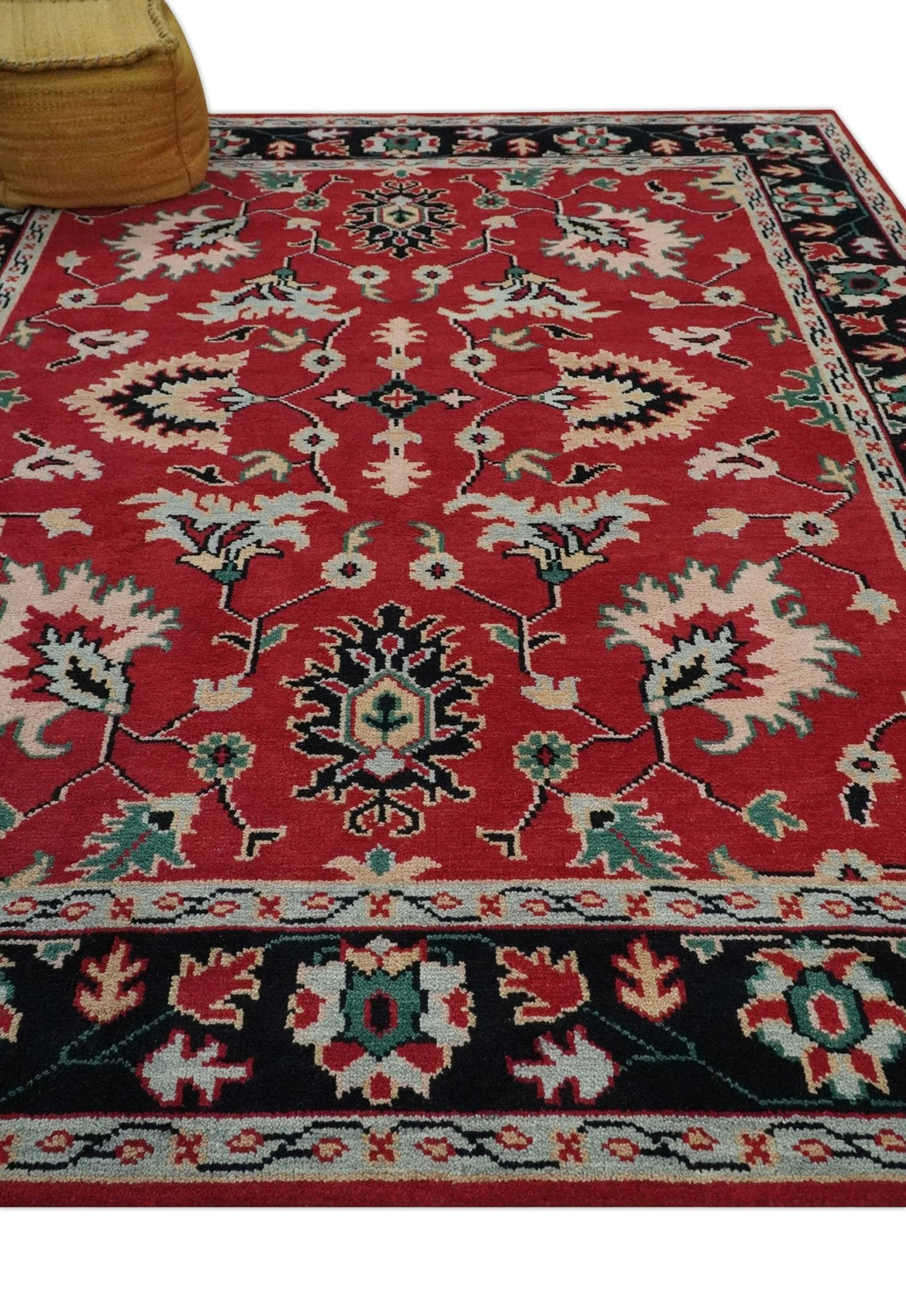 Red and Black Hand Knotted Traditional Oushak Custom made wool Area Rug