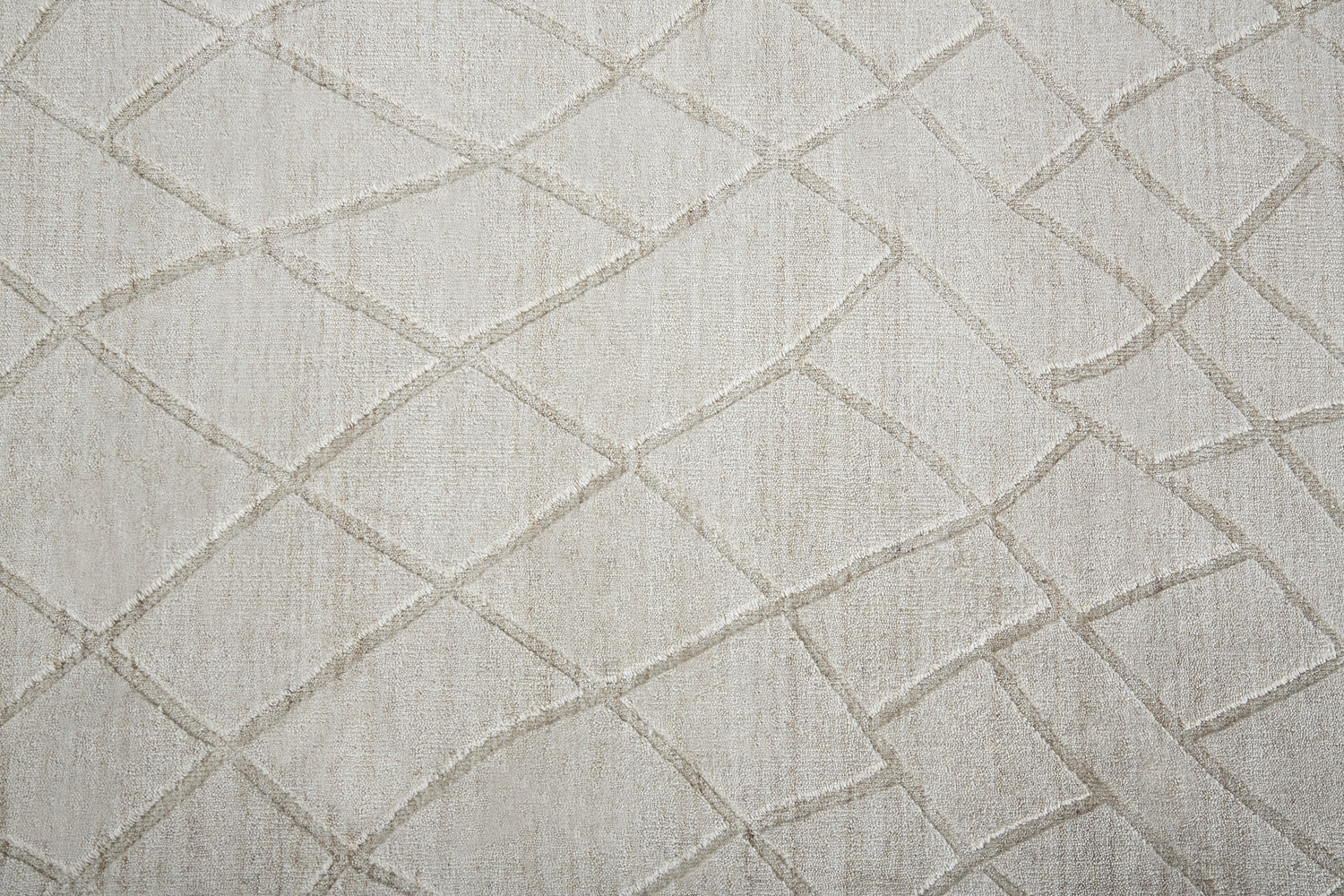 A tone-on-tone ivory diamond trellis in handmade wool and viscose — the Redford brings artisanal texture and quiet sophistication to any modern or transitional space.