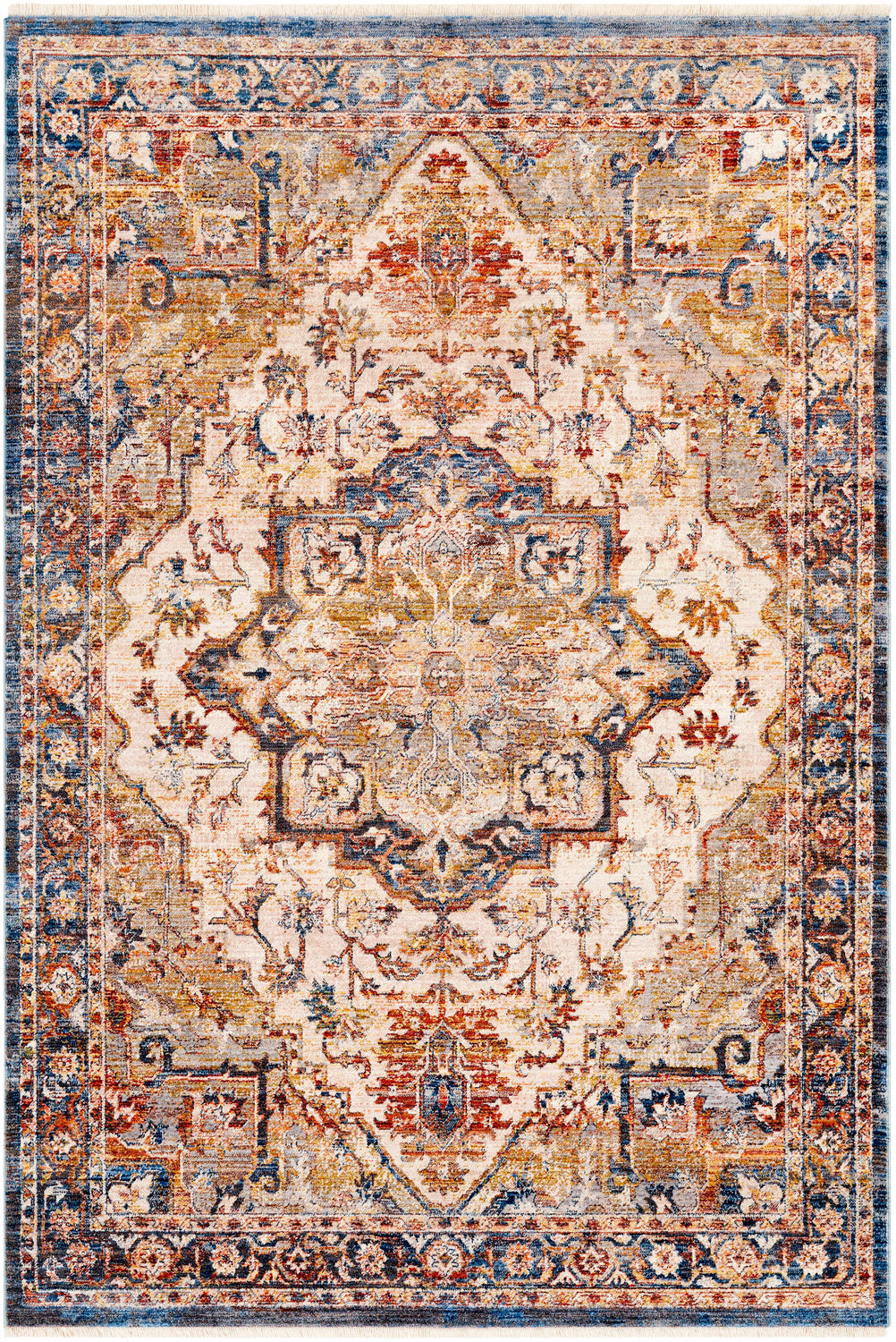 This stylish Revelstoke Traditional Medallion Area Rug is the perfect addition to any traditional decor. Made of polyester with a medium pile, this rug is designed for high-traffic areas and features machine-woven construction for durability. This elegant piece features a fringe and is made in Turkey, bringing an international flair to your living space. To extend its life and prevent slipping, we recommend using a rug pad (sold separately).