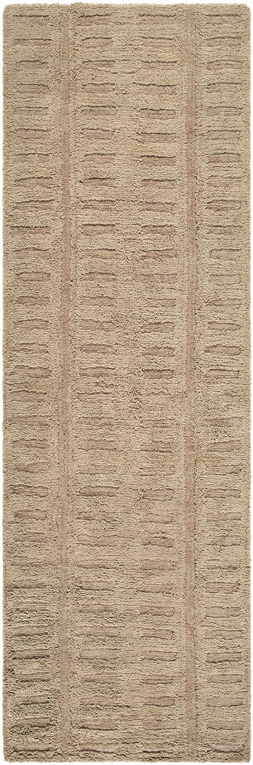 Transform your living space into an oasis of luxury with the intricate hand tufted construction of this exquisite wool rug. Indulge in the velvety high pile and elevated 0.7 inch thickness that adds a touch of sophistication to any room. The lavish taupe, prairie dust, and brown hues complement the contemporary revival, broken striped style, making it the perfect statement piece for your home. And the best part? You can easily maintain its pristine appearance by simply tossing it in the washing machine, making it a practical and affordable alternative to Tscudi.