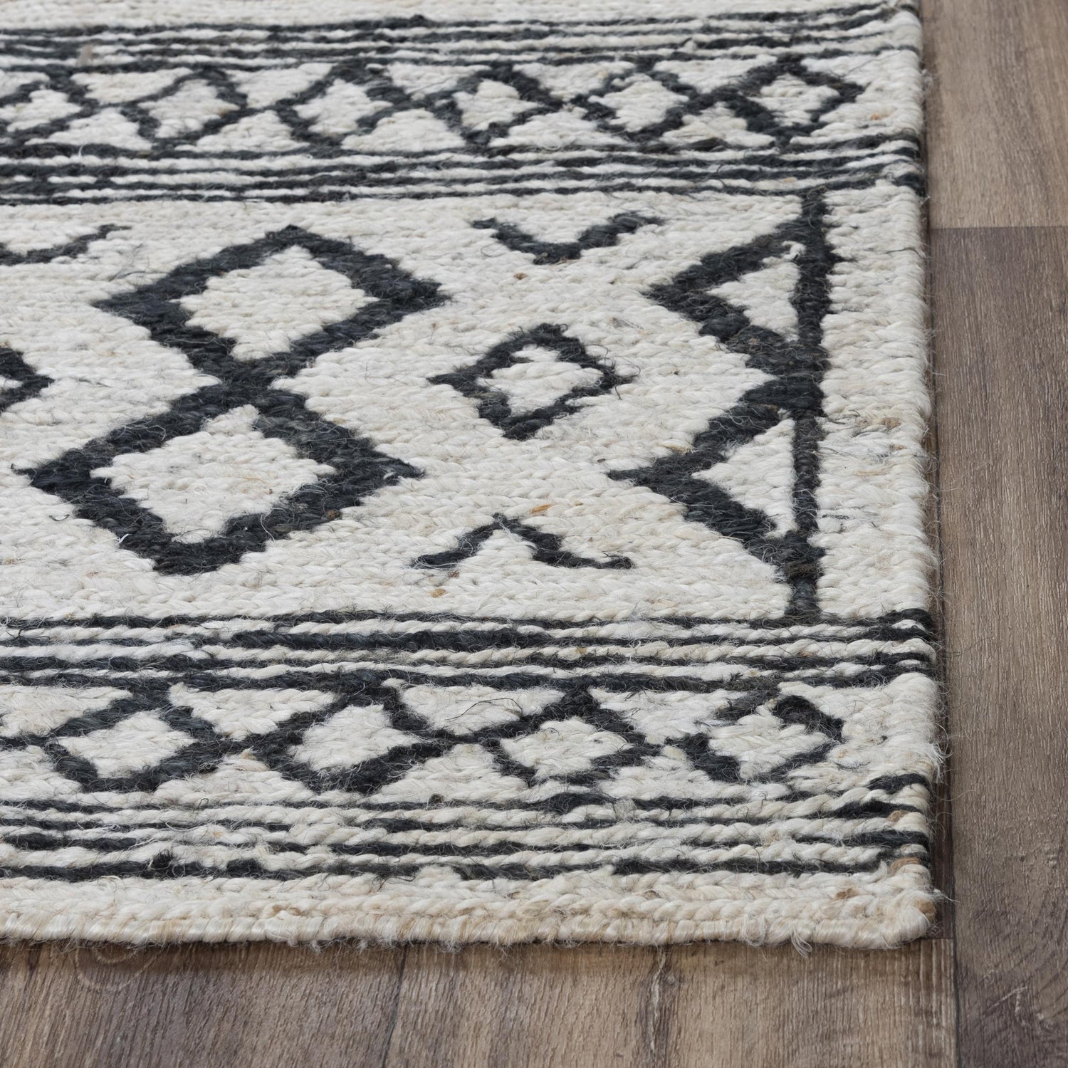 Sultan Charcoal/Beige Tribal Tassel Wool Rug - Clearance