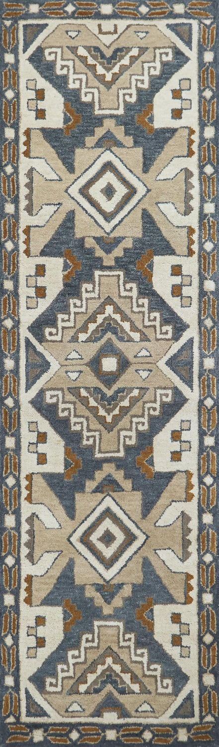 Sultan Charcoal/Beige Tribal Tassel Wool Rug - Clearance