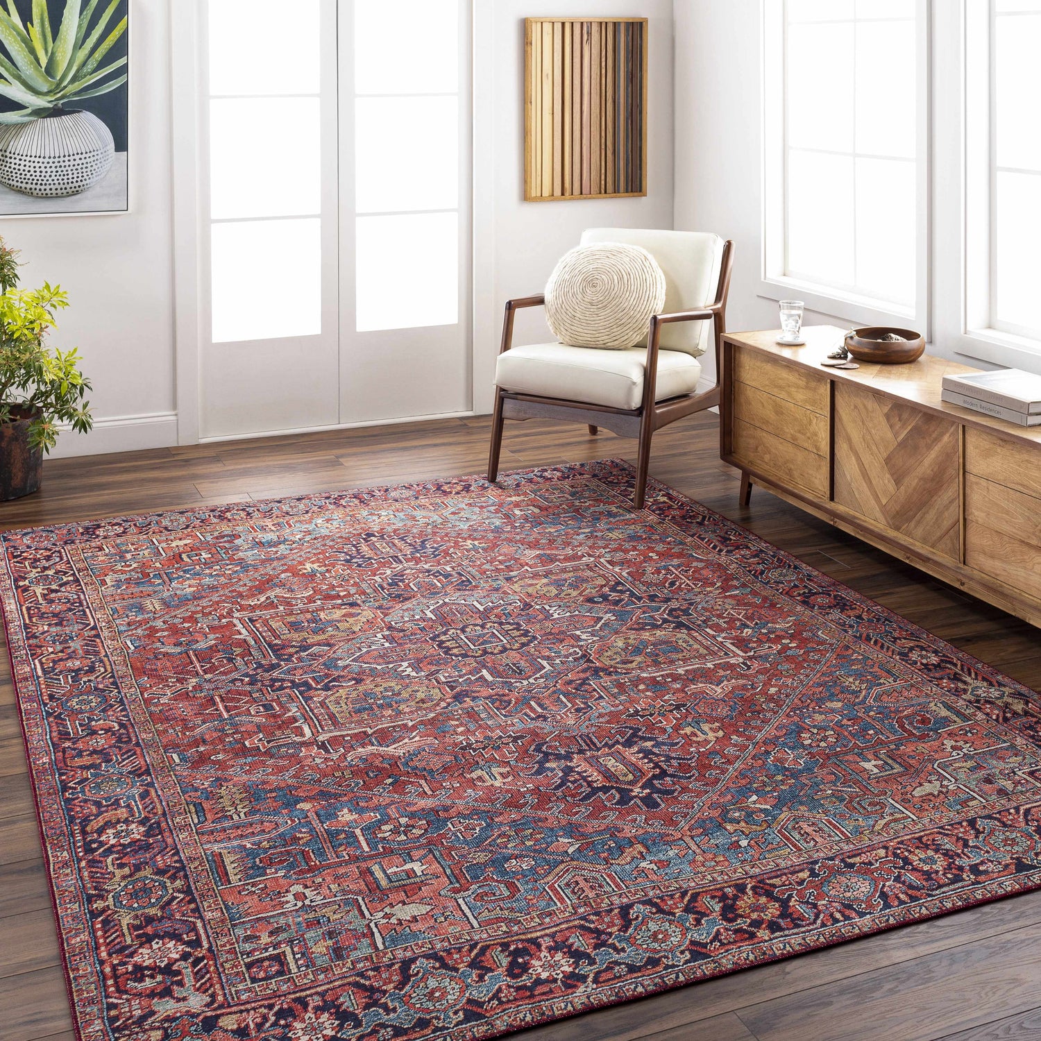 This Ronneby Red Traditional Area Rug is the perfect way to add a traditional touch to any room. Crafted with a durable Polyester, this machine-woven construction is designed to withstand high-traffic areas. It's low profile ensures that it won't get in the way and makes cleaning easy - simply spot clean as needed. For added protection, we recommend using a rug pad underneath. Add this classic piece to your home today for an instant upgrade!
