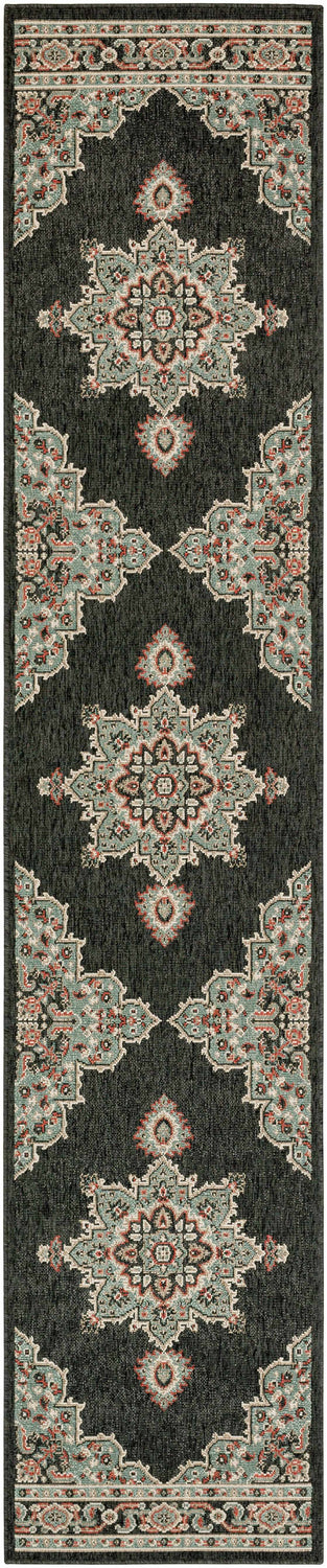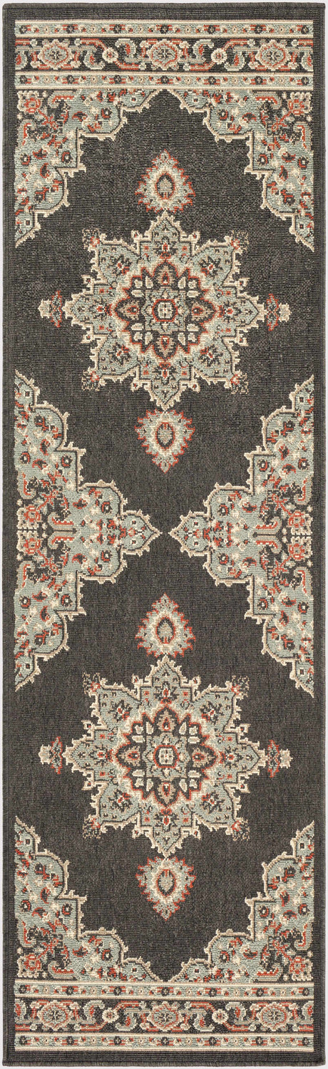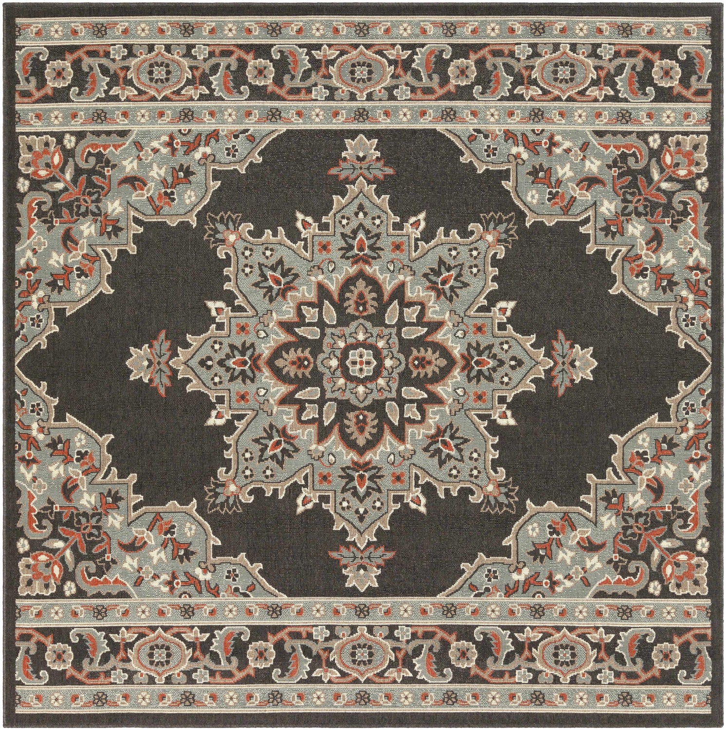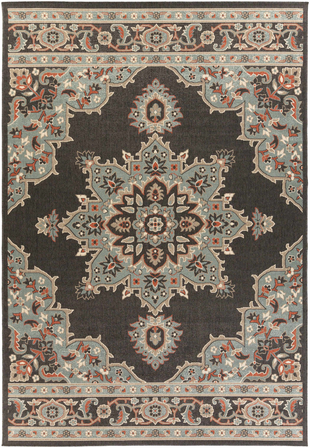 This Roseglen Area Rug offers a traditional style perfect for any outdoor living space. Machine woven from Olefin material, this rug is designed to withstand high traffic and is UV and weather resistant, making it suitable for outdoor use. Made in Egypt, this low-pile rug is soft to the touch and easy to clean - just vacuum or spot clean with mild soap and water. For added comfort and stability, we recommend using a rug pad (not included).