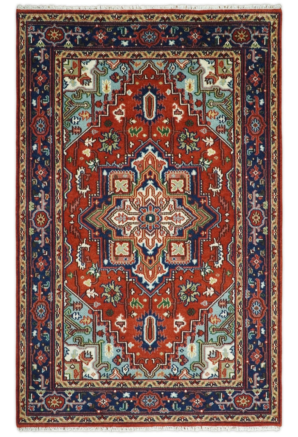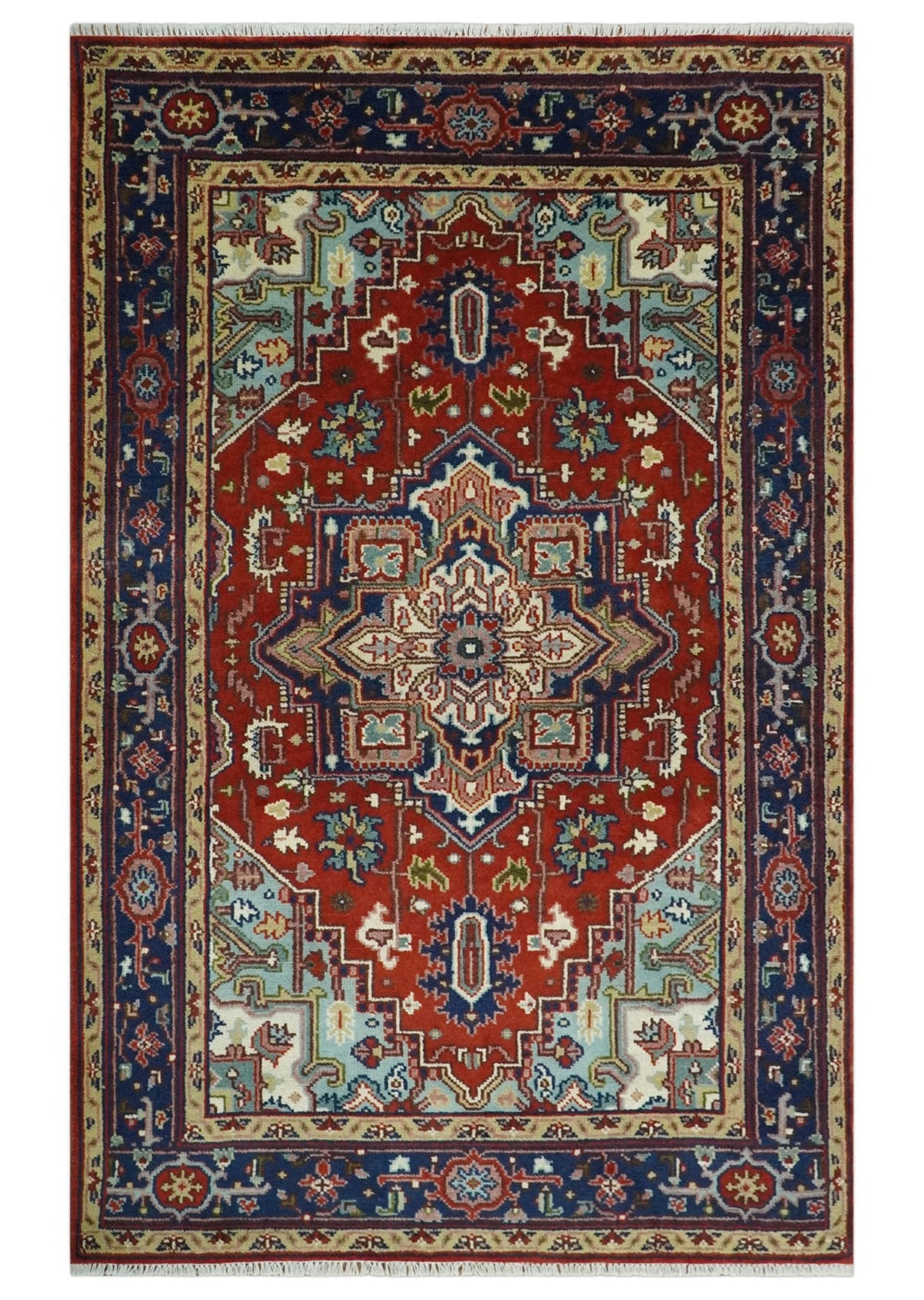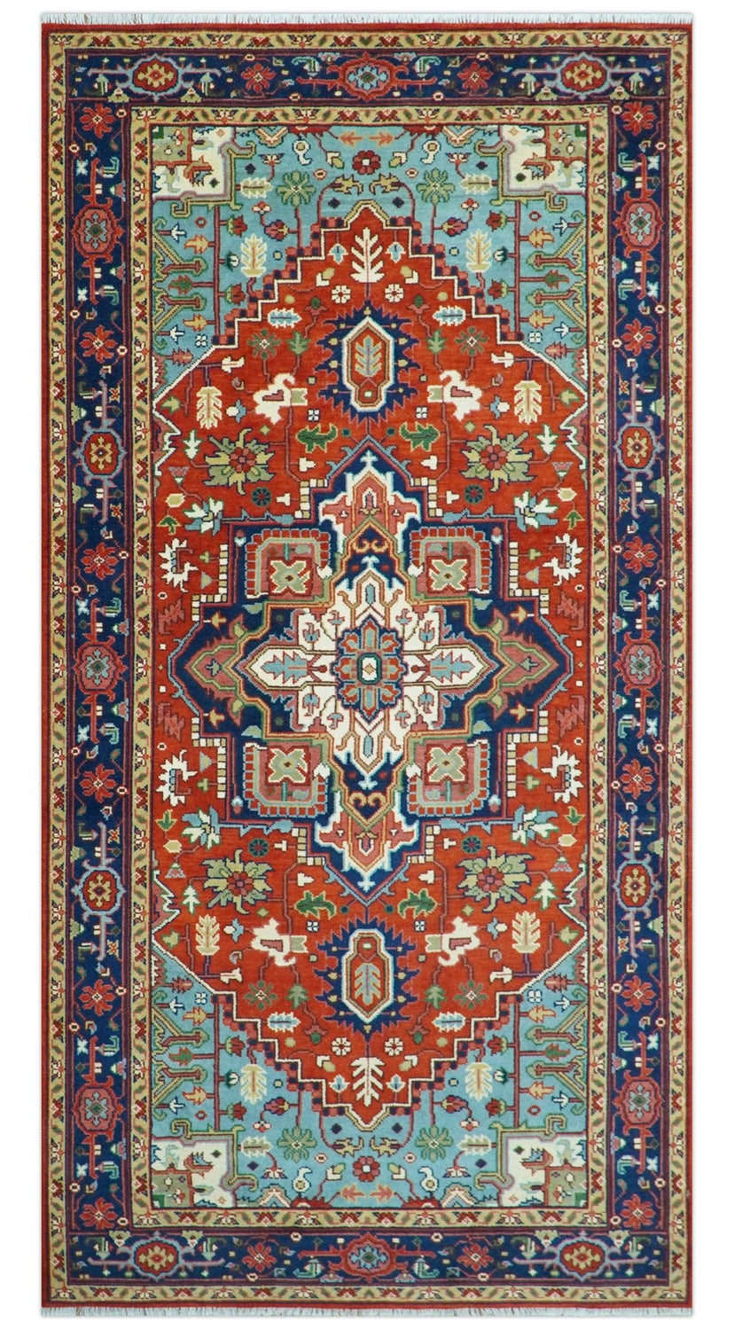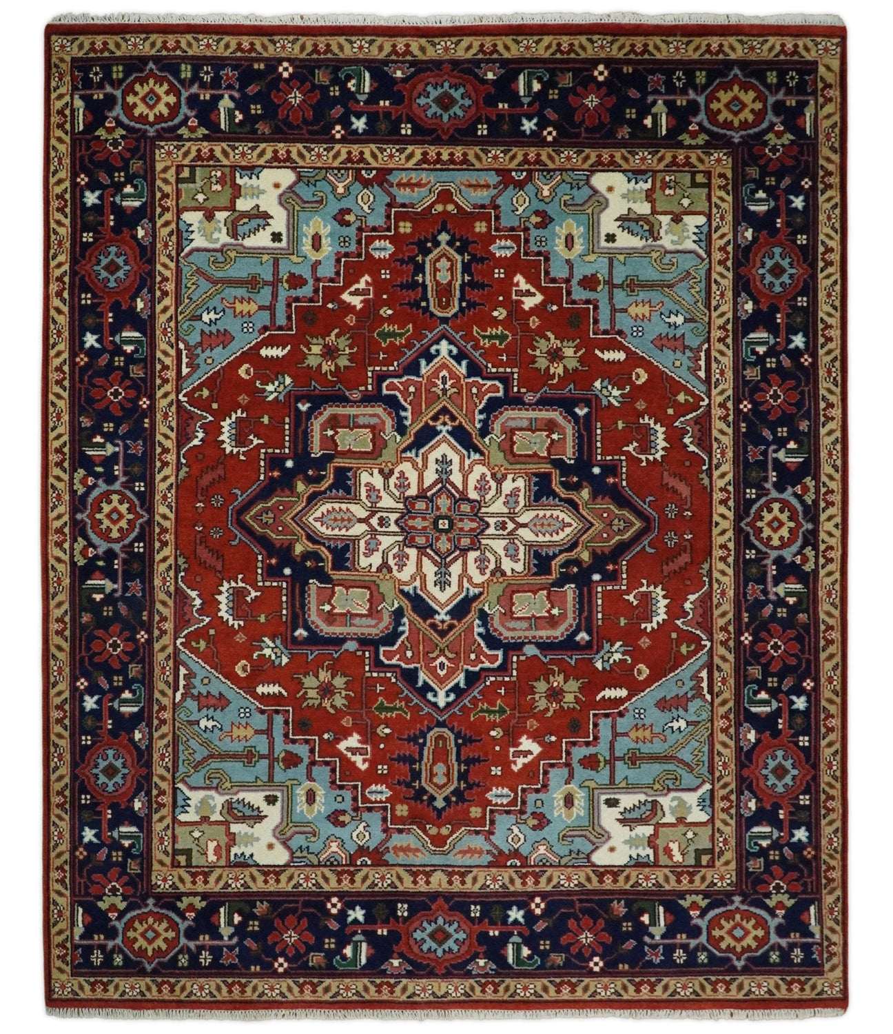 Rust and Blue Hand Knotted Traditional Heriz Serapi Multi Size wool Area Rug