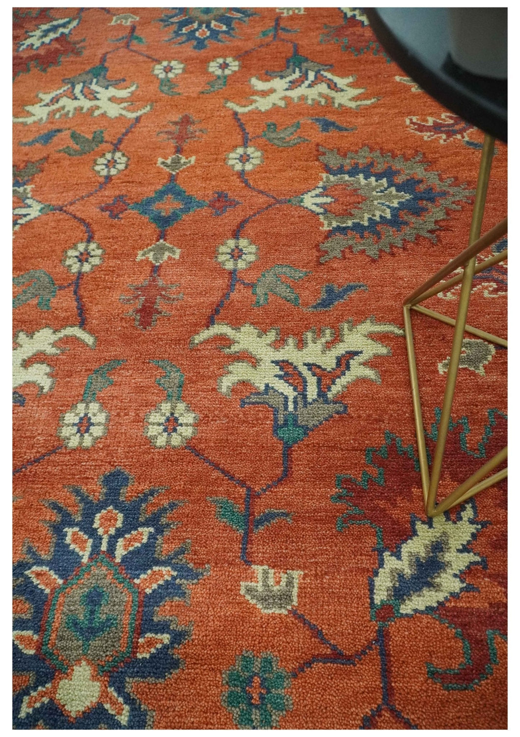 Rust, Blue and Beige Hand Knotted Oriental Oushak Multi Size wool Area Rug