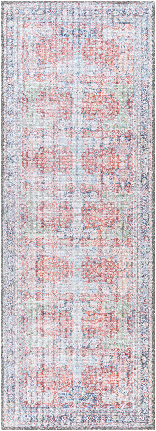 Bring an updated traditional style to your home with the Rust Goma Vintage Washable Area Rug. Woven in Turkey from a chenille-polyester and polyester blend, this machine-made rug is designed to withstand high traffic areas without compromising on style. The no pile design allows you to easily keep it clean; simply machine wash cold on delicate cycle and line dry for easy maintenance. For added comfort, use with a rug pad (not included). This stunning area rug is sure to bring sophistication and elegance to any room in your home.