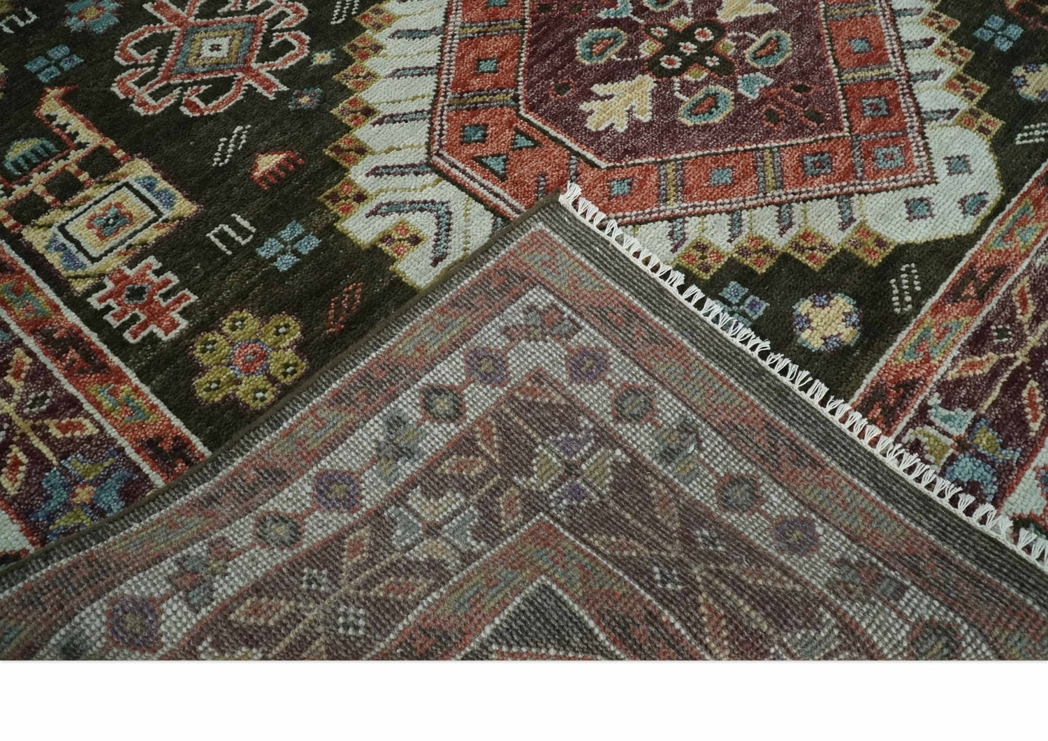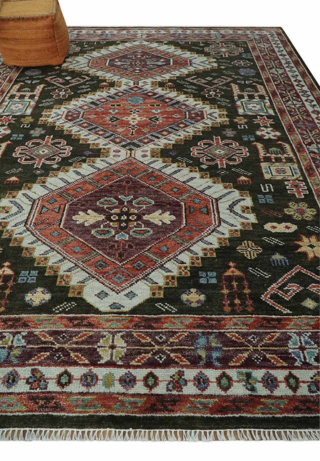 This Hand-Knotted Rug has been Made with Handspun Wool. The beautiful colors of the rug carry a legacy of the heirloom rug. The traditional design of the rug completes your space without making it look busy. Hand-Knotted rugs are durable and can last for decades if treated right.
