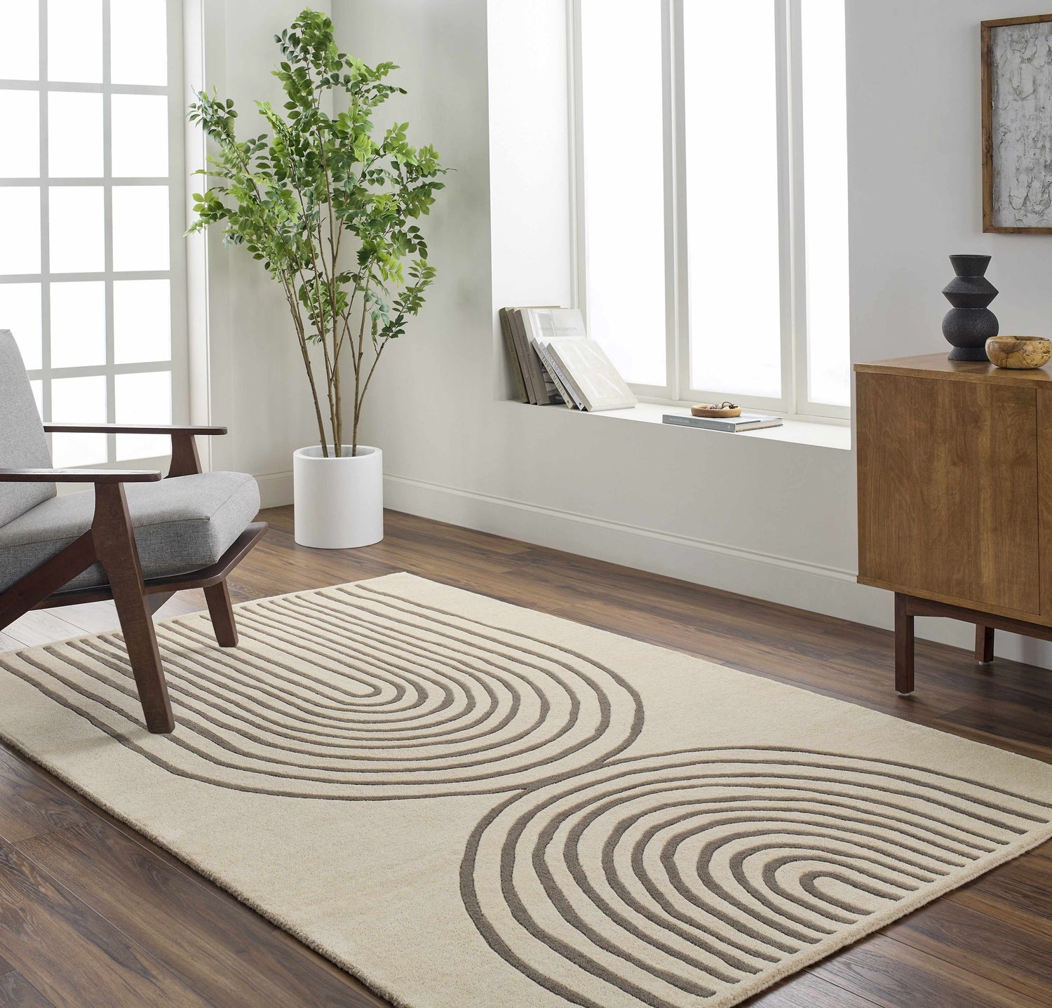 Keita Cream & Black Grid Plush Rug