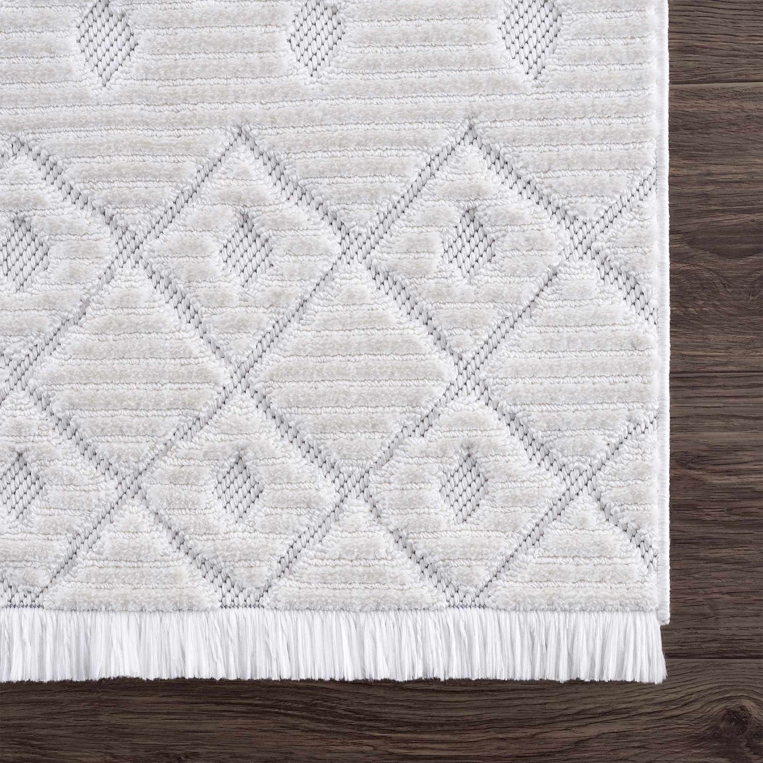Sample Ivory Beil Textured Trellis Fringe Area Rug