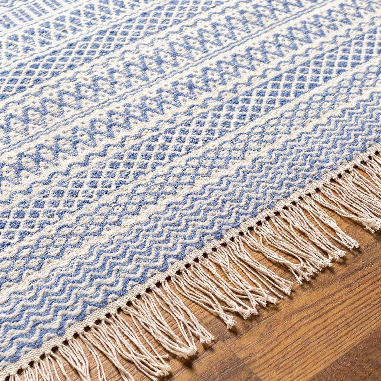 Sanc Blue/Cream Flatweave Wool Rug - Clearance