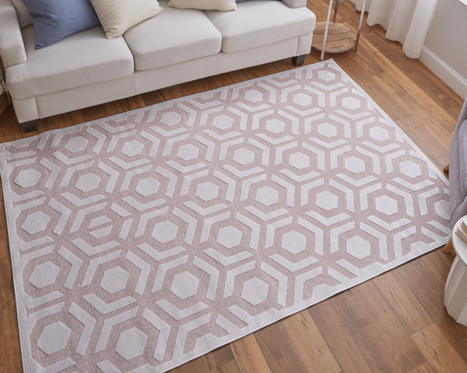 Feizy Saphir Mira Modern Geometric - Pink/White Area Rug - Clearance