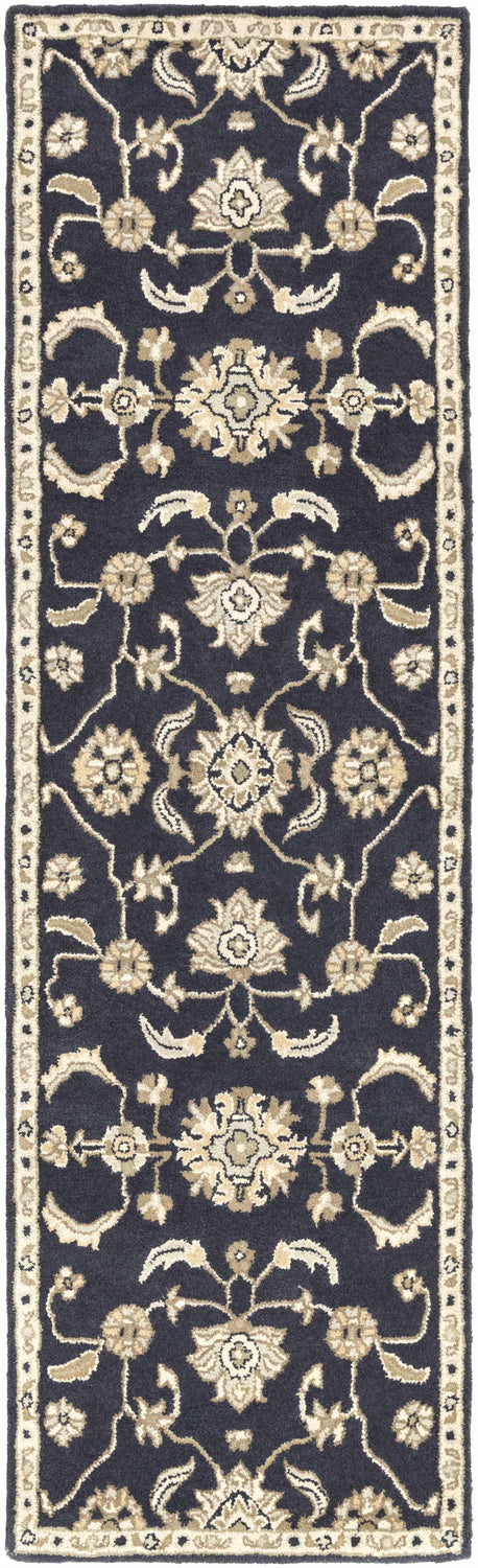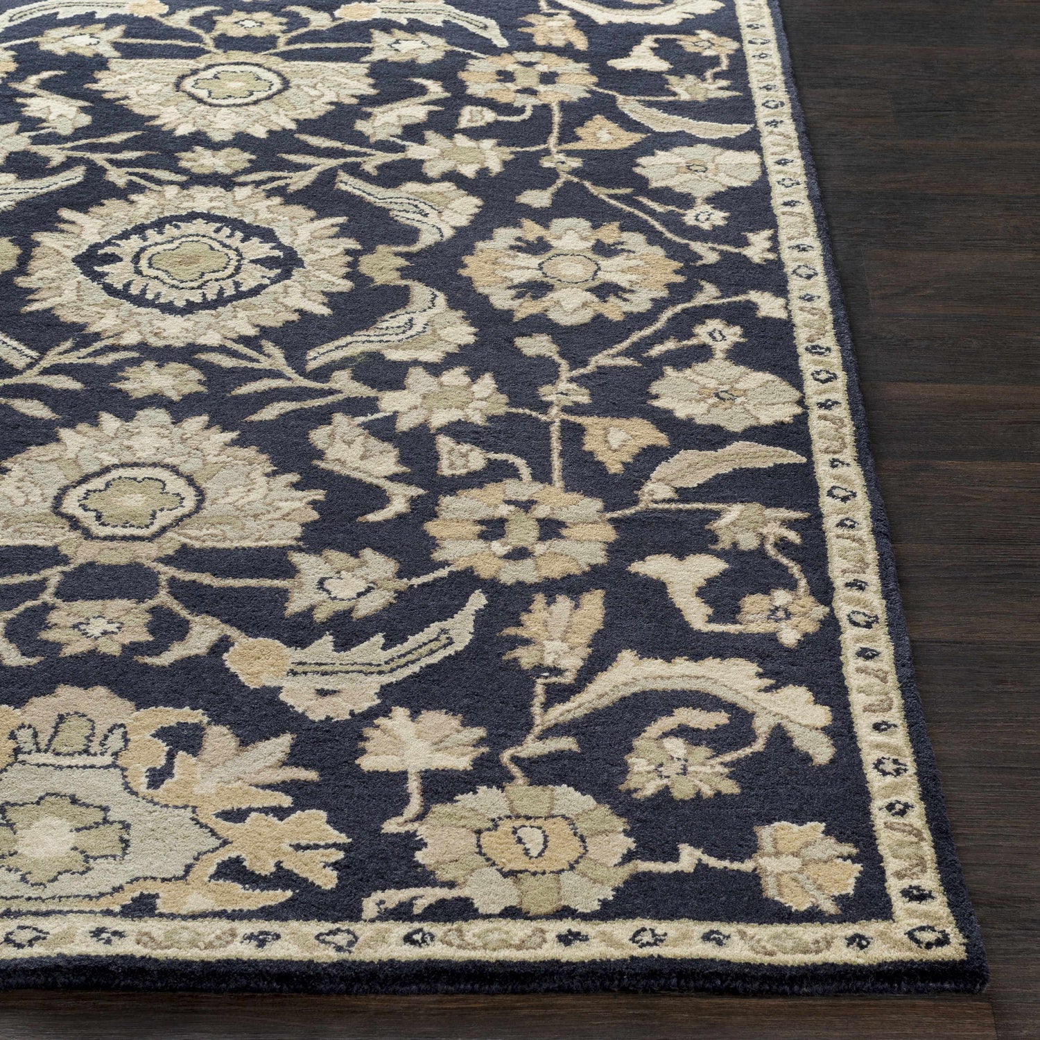 Experience the luxurious comfort and classic style of our Caesar CAE-1164 Black Floral Wool Rug Hand Tufted Wool Rug. This updated traditional rug, manufactured in India, boasts an exquisite medium pile that is best showcased with a rug pad to enhance its plushness underfoot. Made entirely from wool, it offers unmatched warmth and texture that easily transforms any room into a cozy retreat. The hand-tufted construction not only adds to the overall appeal but also ensures durability for long-lasting use. As part of your care routine, simply spot clean this masterpiece using water only to maintain its pristine look and feel. Elevate your interior design effortlessly with this beautiful addition from our Caesar CAE-1164 Black Floral Wool Rug collection.