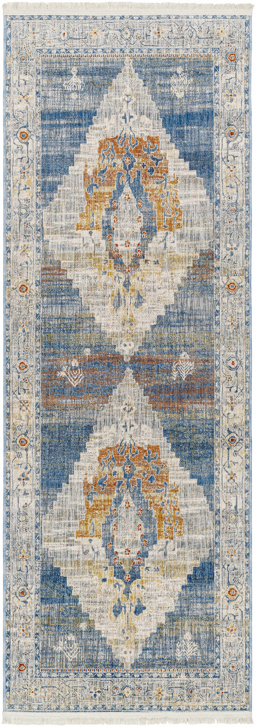 This exquisite traditional-style rug is sure to add a touch of class to any room. The area rug, made in Turkey from 100% Polyester and machine woven for durability, is designed for high traffic with its low pile and will last for many years. The fringe completes the classic look of this piece. To maximize your enjoyment, we recommend using a rug pad (not included) with this product. Buy now and make a statement in your home!
