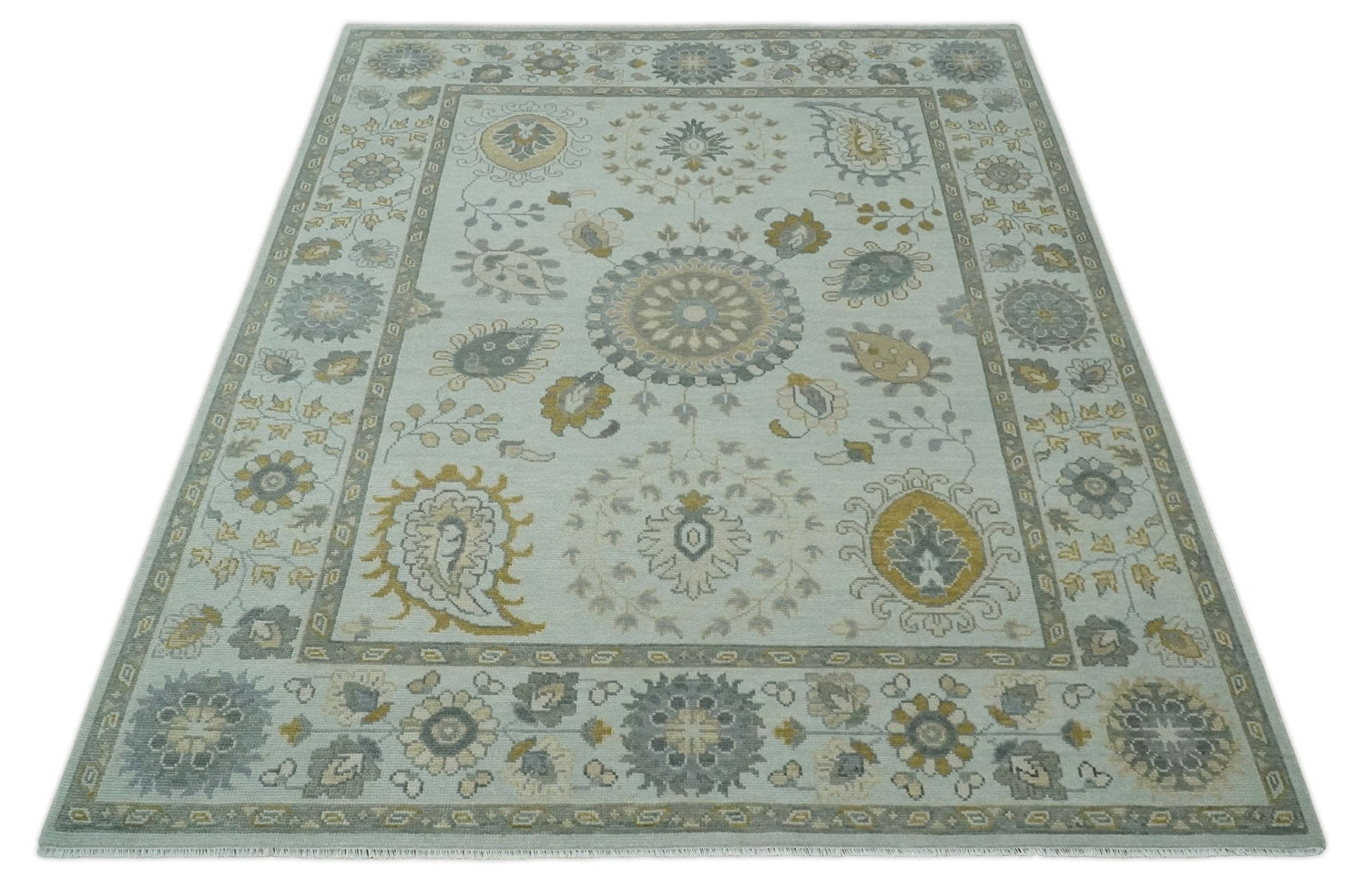 Silver, Olive and Gray Floral Herati Medallion Hand knotted Custom Made wool Area Rug