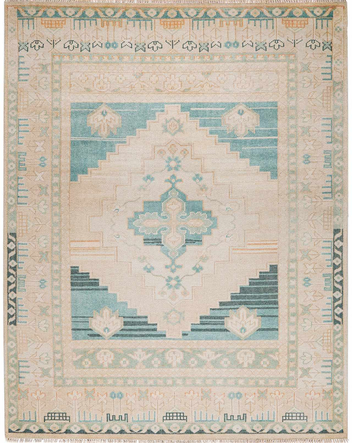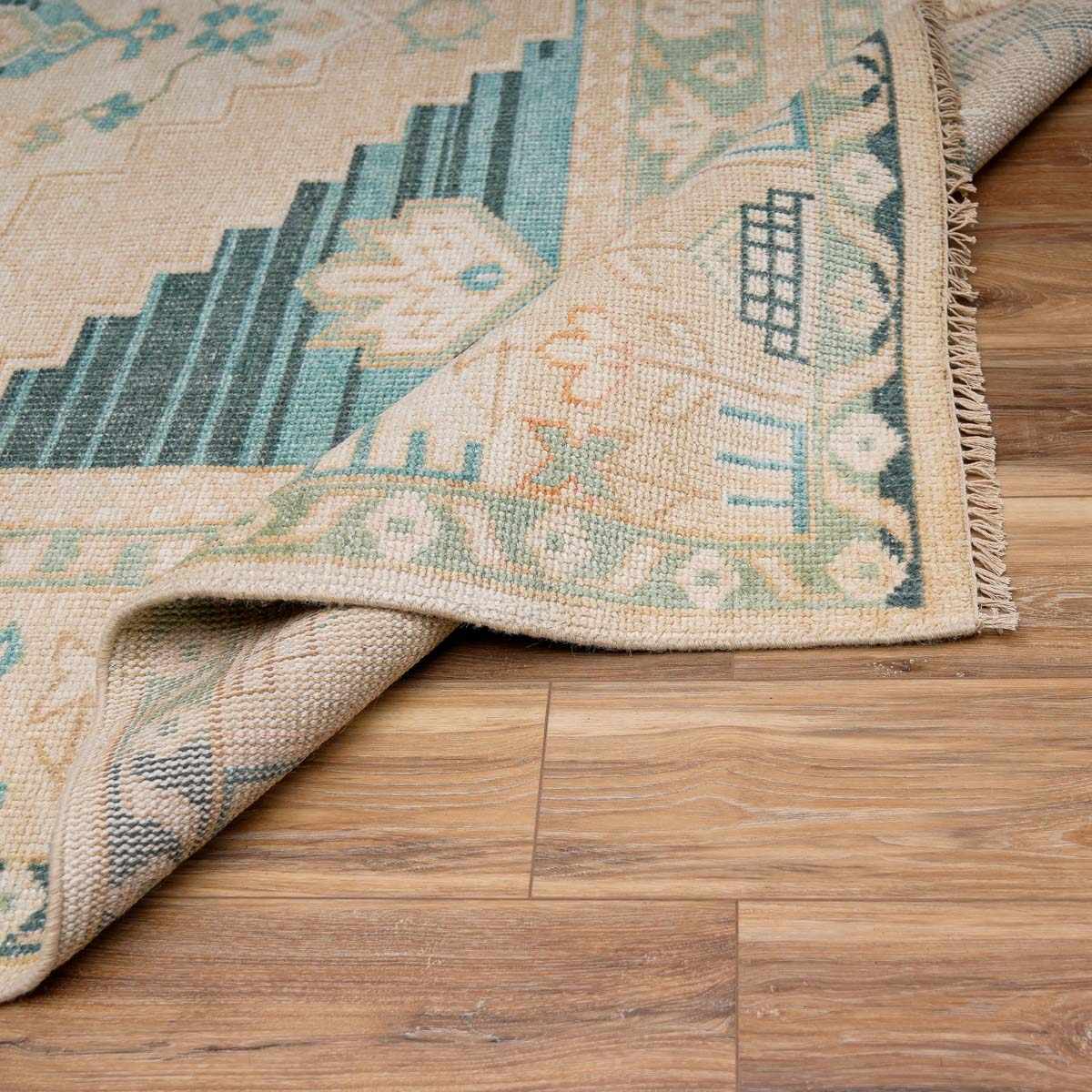 Songculan Teal Hand Knotted Wool Rug