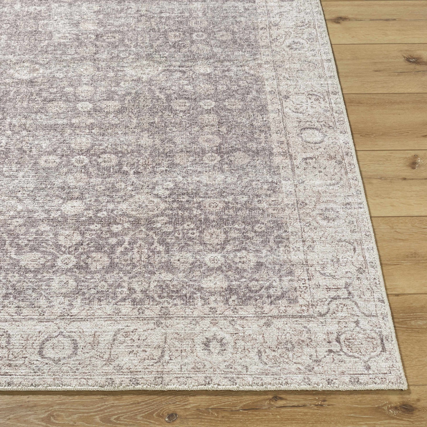 A beautifully faded purple and gray Persian floral rug with an ornate border — the kind of timeless, heirloom-inspired look that makes any room feel curated.