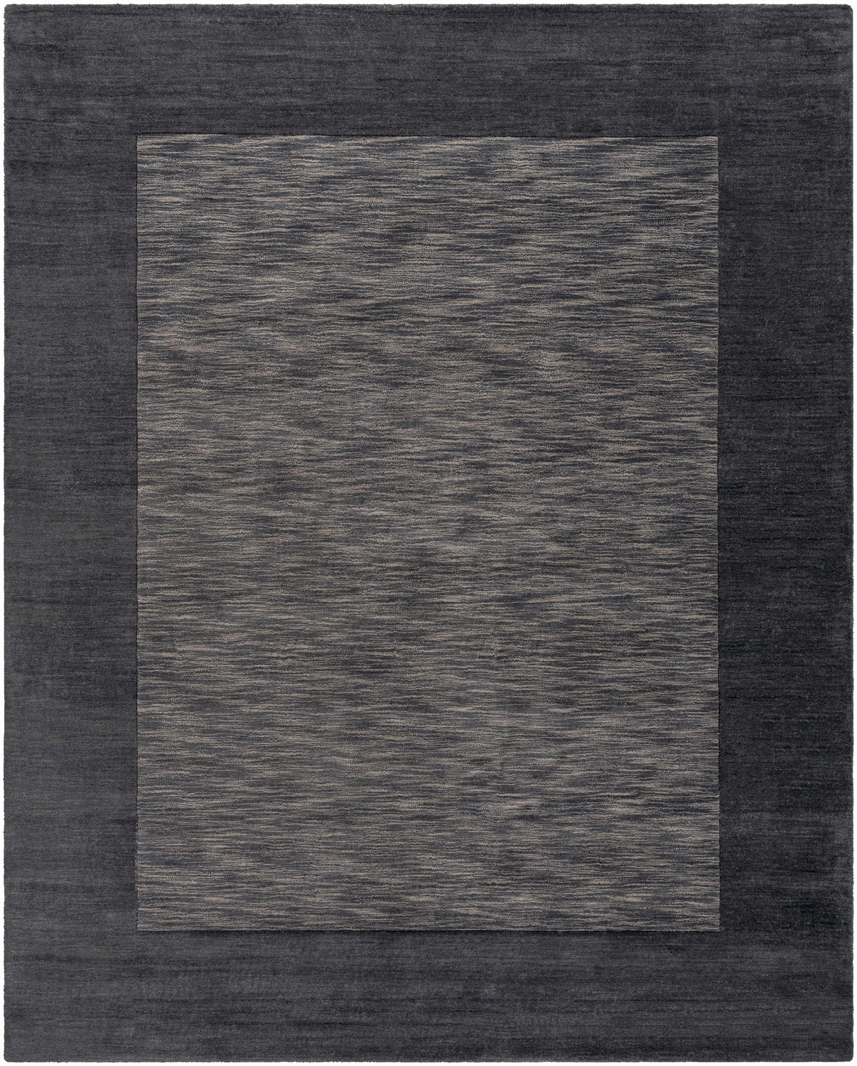 Introducing the Bordered Solid Black Charcoal Wool Area Rug, a modern style statement piece to bring your home decor to life. Hand loomed in India with high-quality wool and a high/low pile, this rug will add softness and texture to any room. Perfect for contemporary spaces, the Bordered Solid Black Charcoal Wool Rug is designed with durability in mind, so you can enjoy it for years to come. For best results, use with a rug pad (sold separately). Spot clean only.