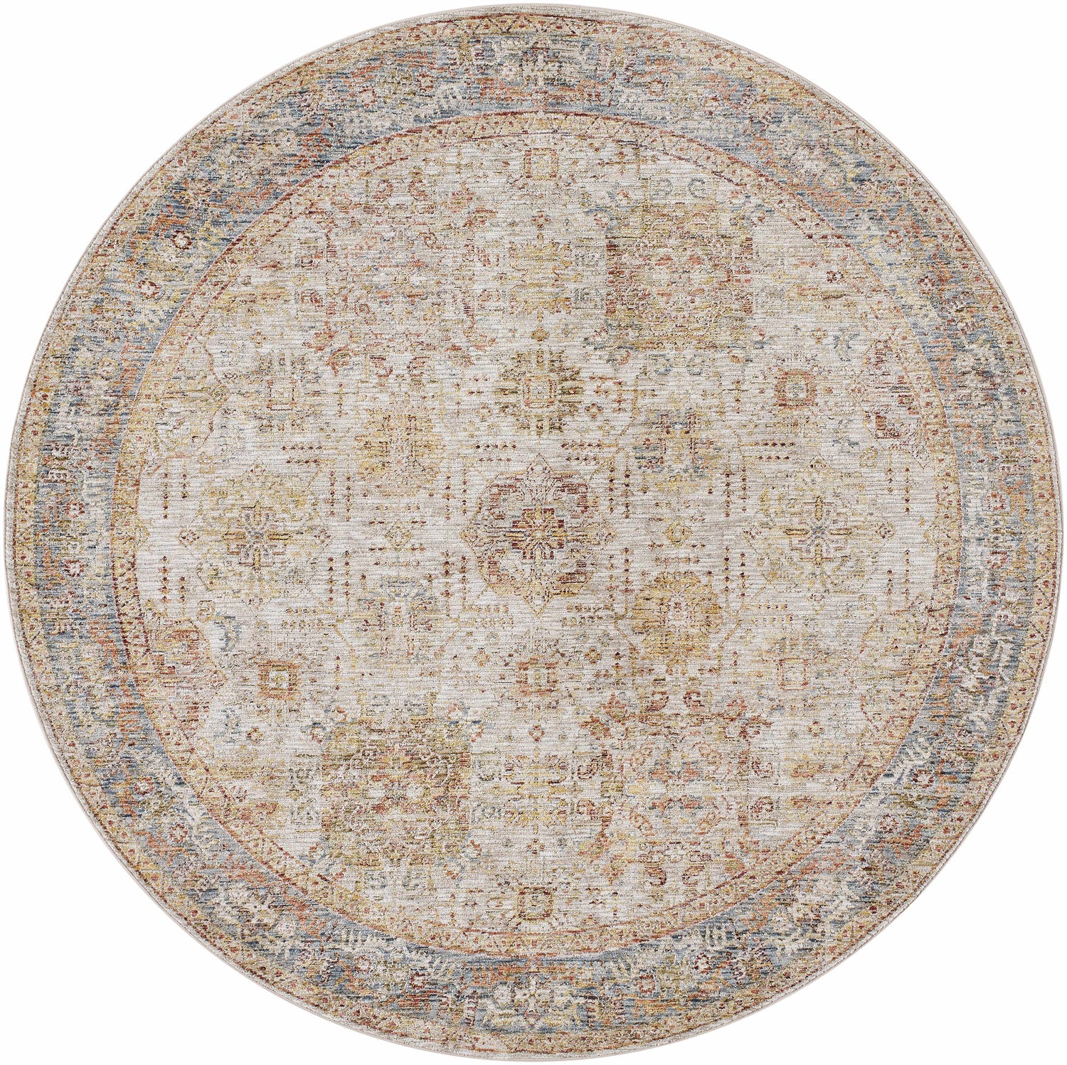 Introducing the Ange Tan & Blue Area Rug - a timeless classic that will bring traditional charm to any space. It is made of polyester for durability and comfort, and is machine woven in Turkey with a medium pile height, making it perfect for high traffic areas. Its fringe detailing adds an extra touch of sophistication to its classic design. Plus, you can keep it looking great by using a rug pad underneath. Transform your living room or bedroom with the elegant Ange Tan & Blue Area Rug.