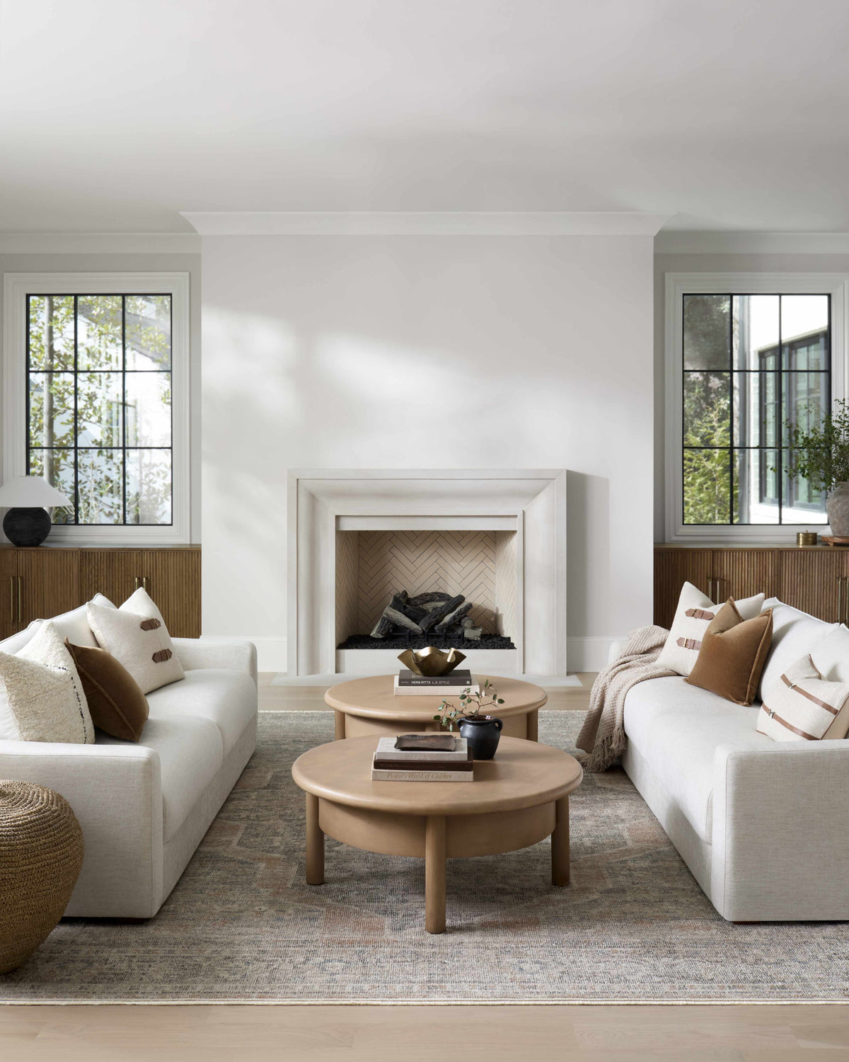 When selecting a living room rug, choose one that anchors your furniture by either placing all the legs on the rug or just the front legs, which helps define the seating area and enhances the room’s acoustics.