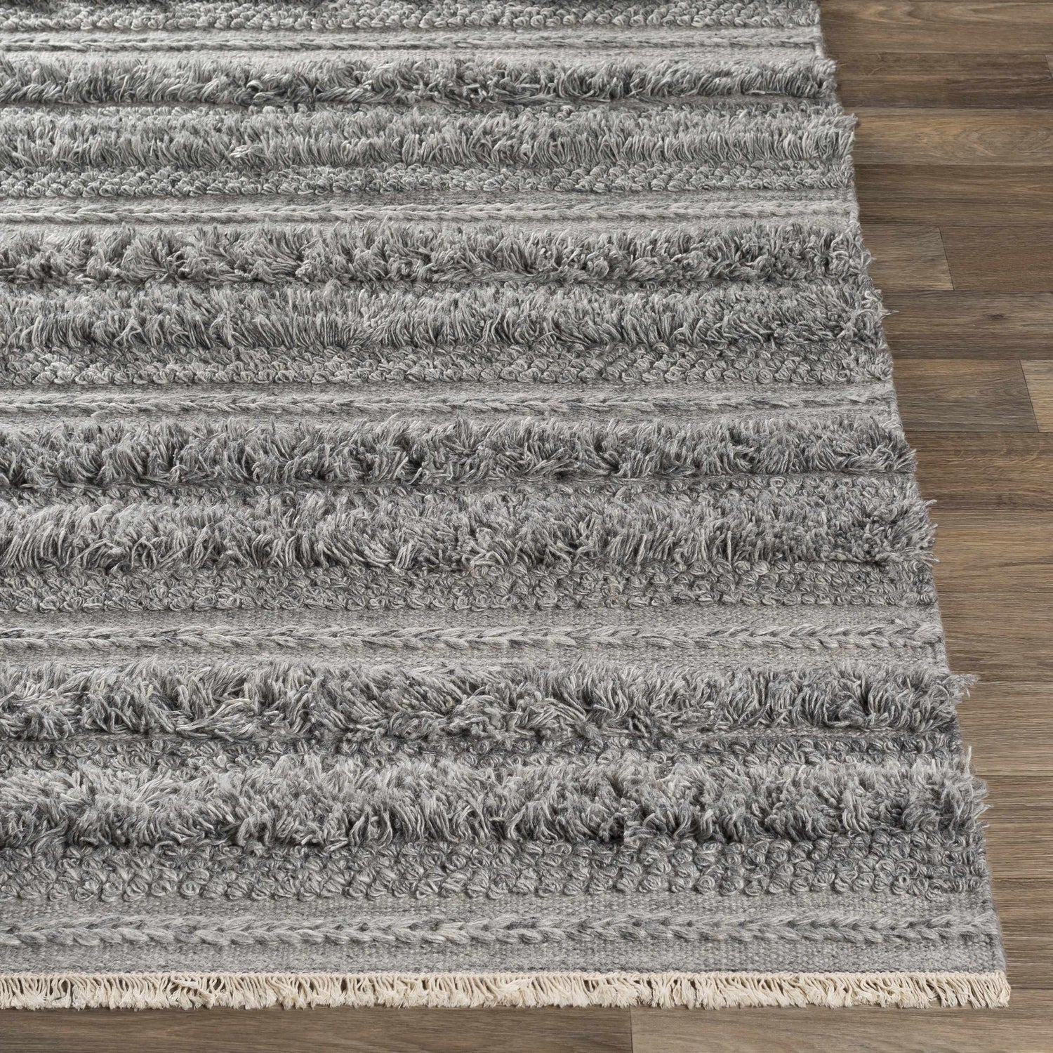 Introducing the Teachey Carpet Collection, a Bohemian Global style rug that effortlessly adds a touch of eclectic charm to any living space. This hand-woven masterpiece, sourced directly from India, boasts a plush pile finish and an inviting fringe edge detail for added texture and personality. Crafted from a luxurious blend of viscose and wool, this rug not only provides an indulgent underfoot experience but also assures longevity. To keep it looking its best, we recommend using with a rug pad and spot cleaning with mild detergent when necessary. Transform your room into a cozy retreat with the Teachey Carpet handmade rug!