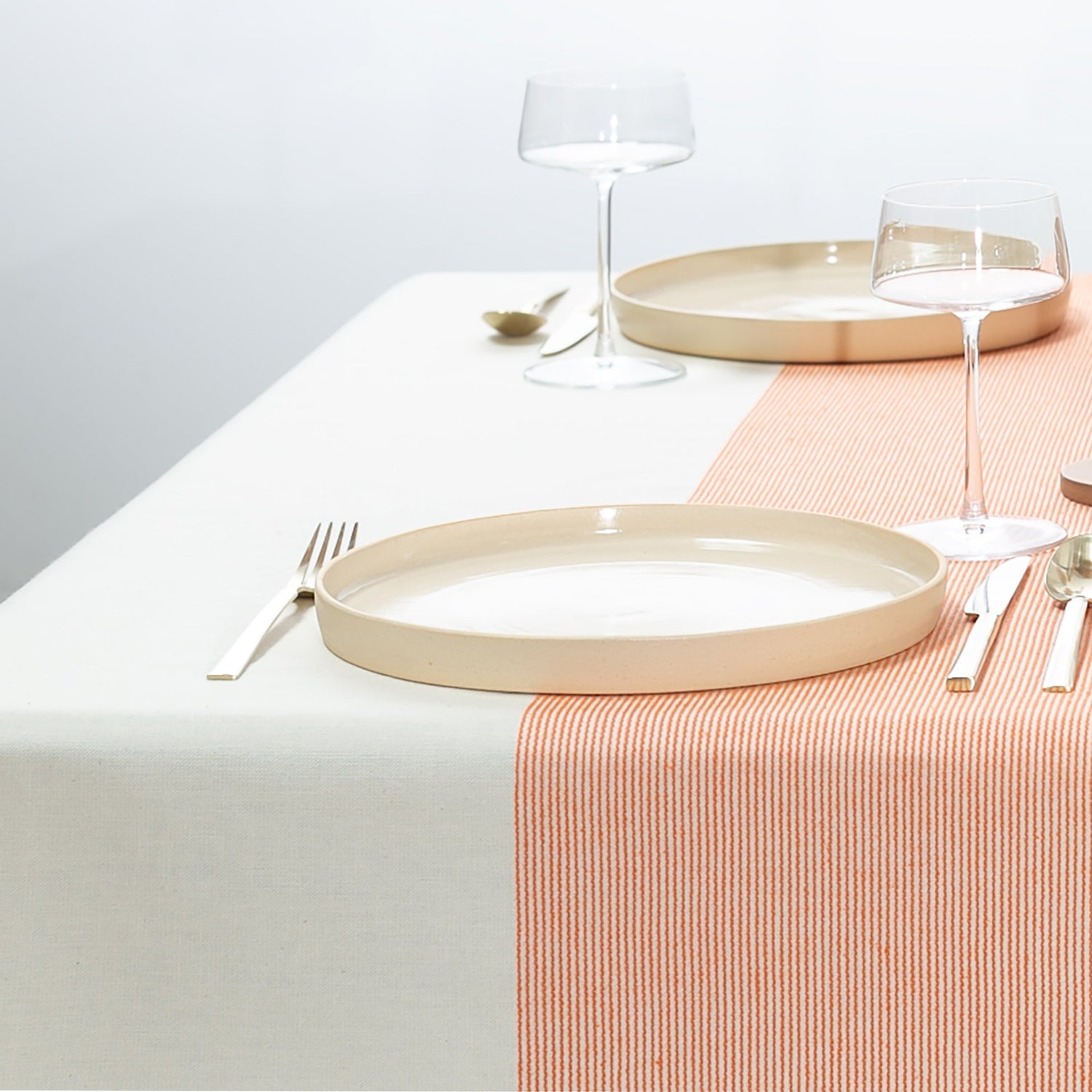 The Stripe Collection Tablecloth Natural & Persimmon