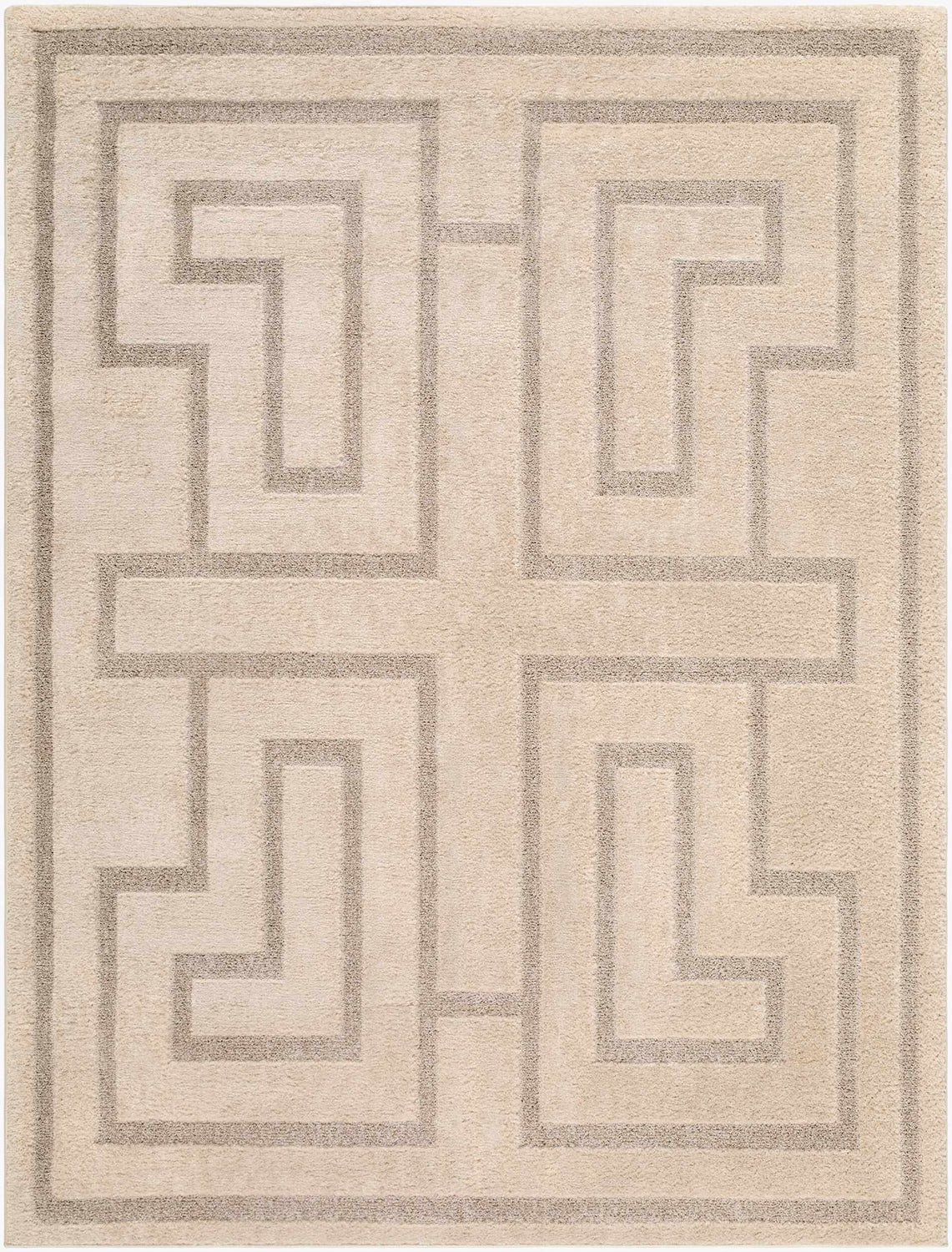 The Rachel Zoe x Livabliss RZSE-2302 area rug brings a quietly sophisticated Greek key geometric pattern to any room. Rendered entirely in a tone-on-tone palette of warm beige and soft taupe-gray, the bold interlocking motifs create visual depth without competing with your existing décor. The four-quadrant Greek key design is framed by a clean outer border, giving the rug a structured, architectural feel that suits modern, contemporary, and transitional interiors alike. Machine woven for consistency and durability, this medium-pile rug sits at 0.47 inches — substantial enough to feel underfoot without being bulky. The neutral color story makes it an effortless anchor for living rooms, dining rooms, or home offices where you want pattern without color drama. Whether you're layering it over hardwood floors or placing it on a light tile surface, the RZSE-2302 adds a refined, designer-approved touch that feels both timeless and on-trend.