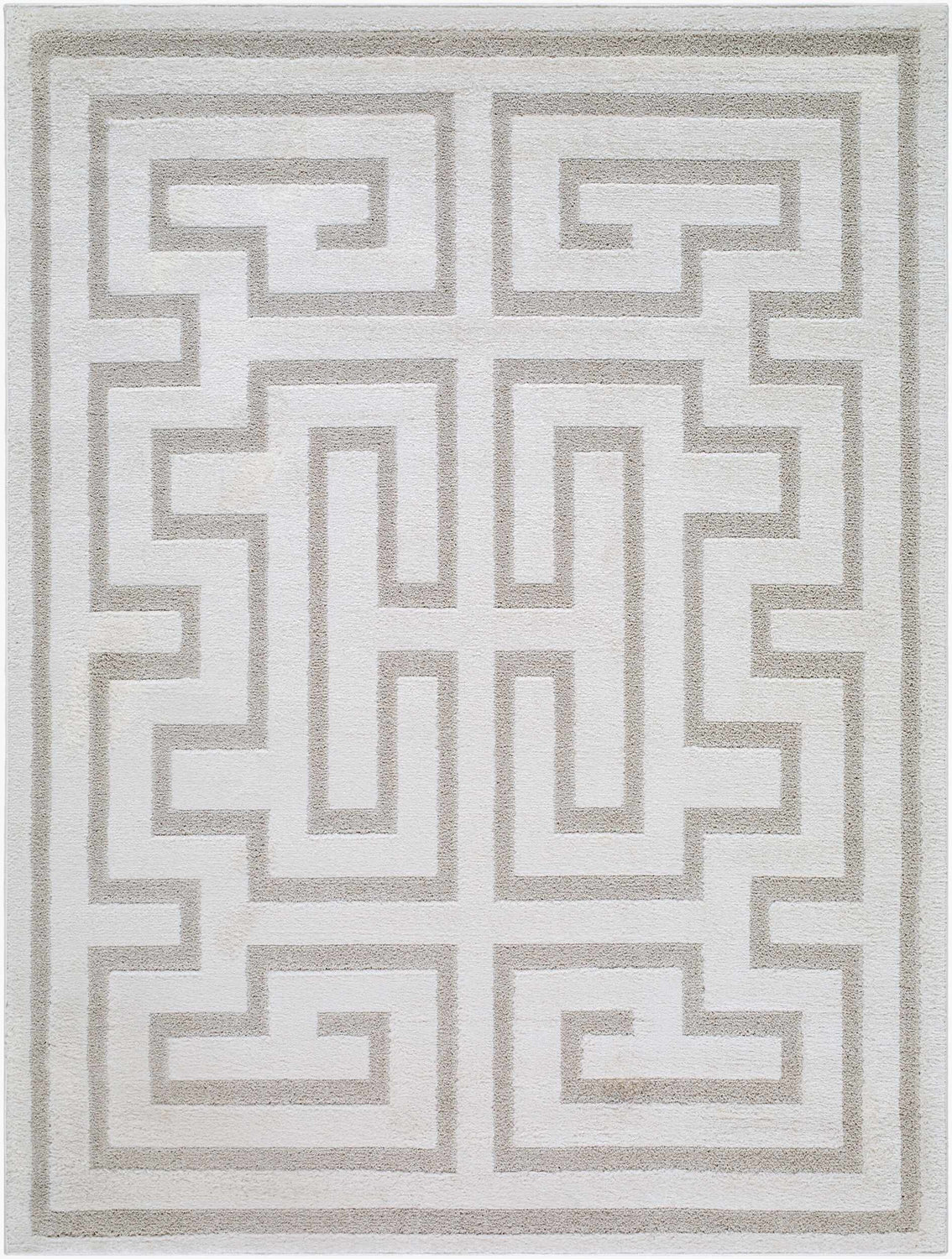 - Bold Greek key geometric pattern in white and soft light gray
