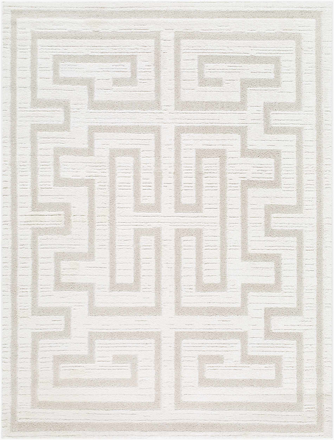- Tone-on-tone Greek key geometric pattern in cream and beige