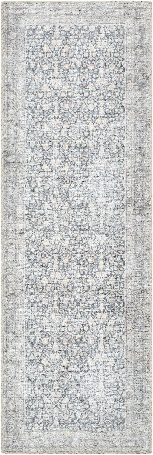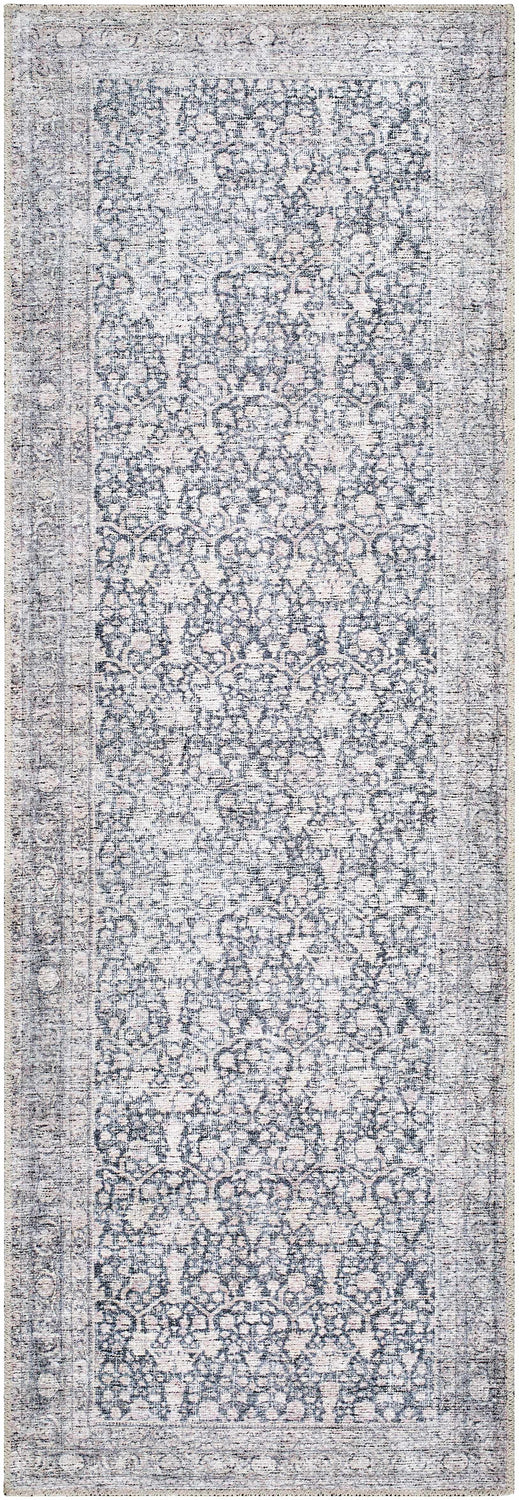 Introducing the Thera Washable Area Rug - Vivir x Livabliss Area Rug, a magnificent collaboration between Vivir and Livabliss that brings traditional elegance with a modern twist into your home. Crafted in Turkey, this machine-woven treasure features an intricate pattern in navy blue, peach, and white, intentionally faded and distressed to achieve a beautifully aged look. Its low pile design makes it an ideal choice for high traffic areas, ensuring durability without sacrificing style. Made of polyester for easy care, this rug can be machine washed on a delicate cycle to keep it looking pristine. Perfectly blending classic charm with contemporary ease of maintenance, the Thera Washable Area Rug - Vivir x Livabliss Area Rug is not only a statement piece but also practical for everyday living. For optimal performance and to prevent slipping, pairing it with a rug pad is recommended. Transform your space with this exquisite area rug that combines timeless design with modern convenience.