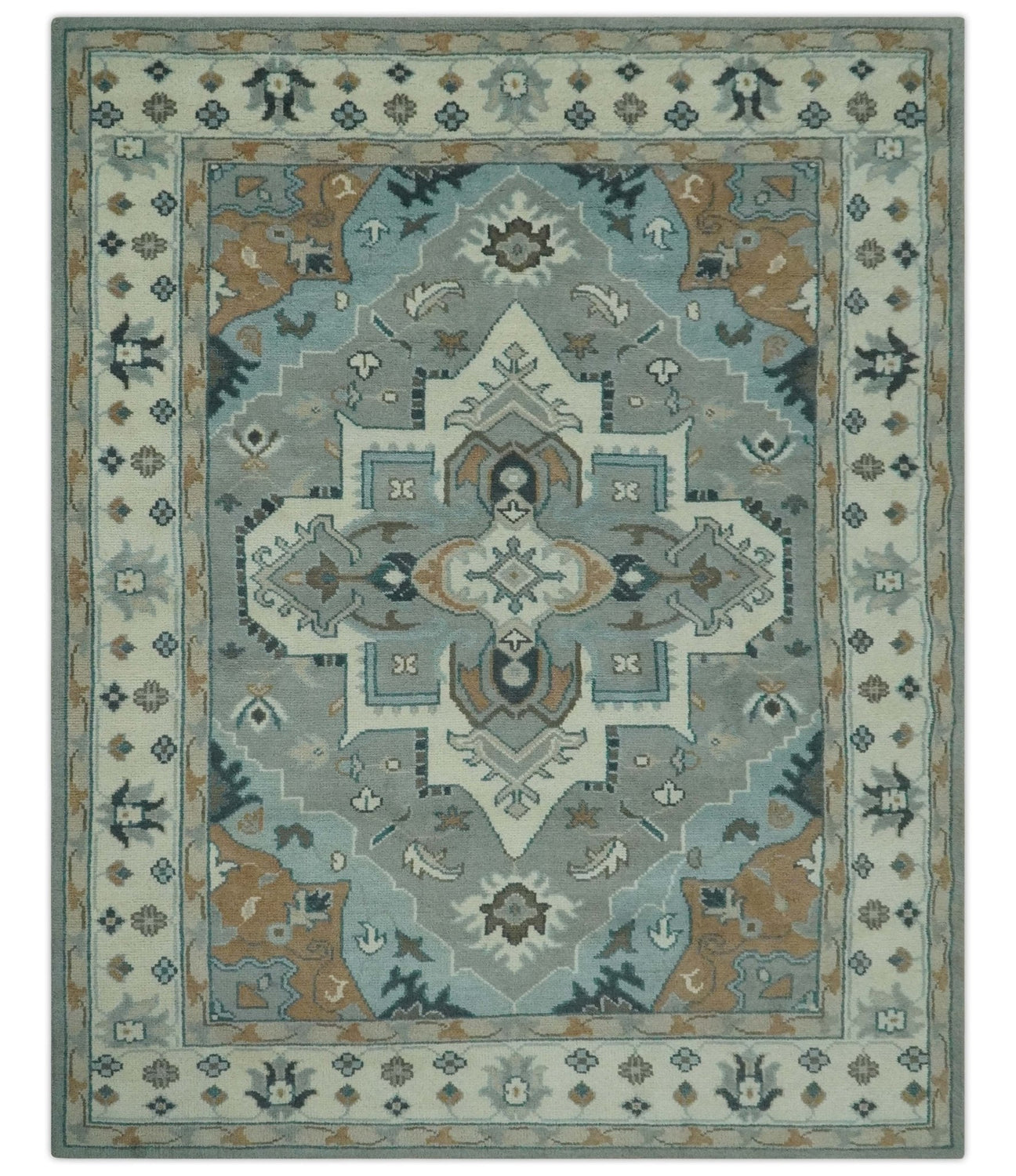 Traditional Heriz Gray and Ivory Floral Hand Knotted Custom Made wool Area Rug