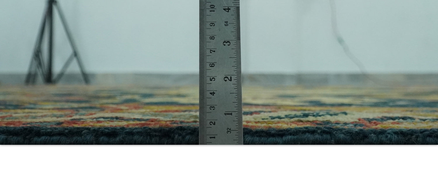 This Traditional Oushak rug features an exquisite antique-style design of blue and gold hues. Hand-knotted and custom-made, this rug showcases expert craftsmanship and offers a timeless appeal. Add a touch of elegance to any space with this one-of-a-kind piece.