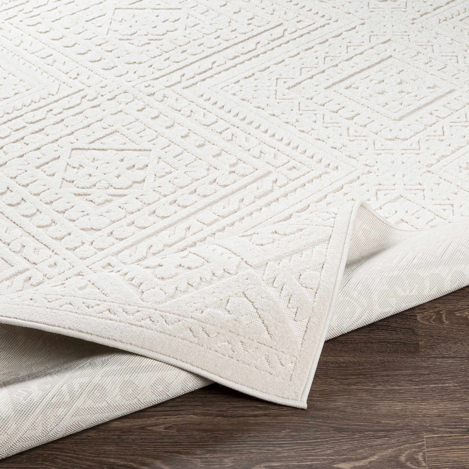 Bring a global touch to any room with this eye-catching Trigg Outdoor Area Rug. The stylish, low-pile design is made of durable polypropylene and is machine woven in Turkey for reliable construction. Perfect for high-traffic areas, this outdoor safe area rug also features a unique high/low texture that's sure to draw attention. Use with a rug pad (sold separately) for added comfort and protection. Cleaning: Professional Rug Cleaning Only.