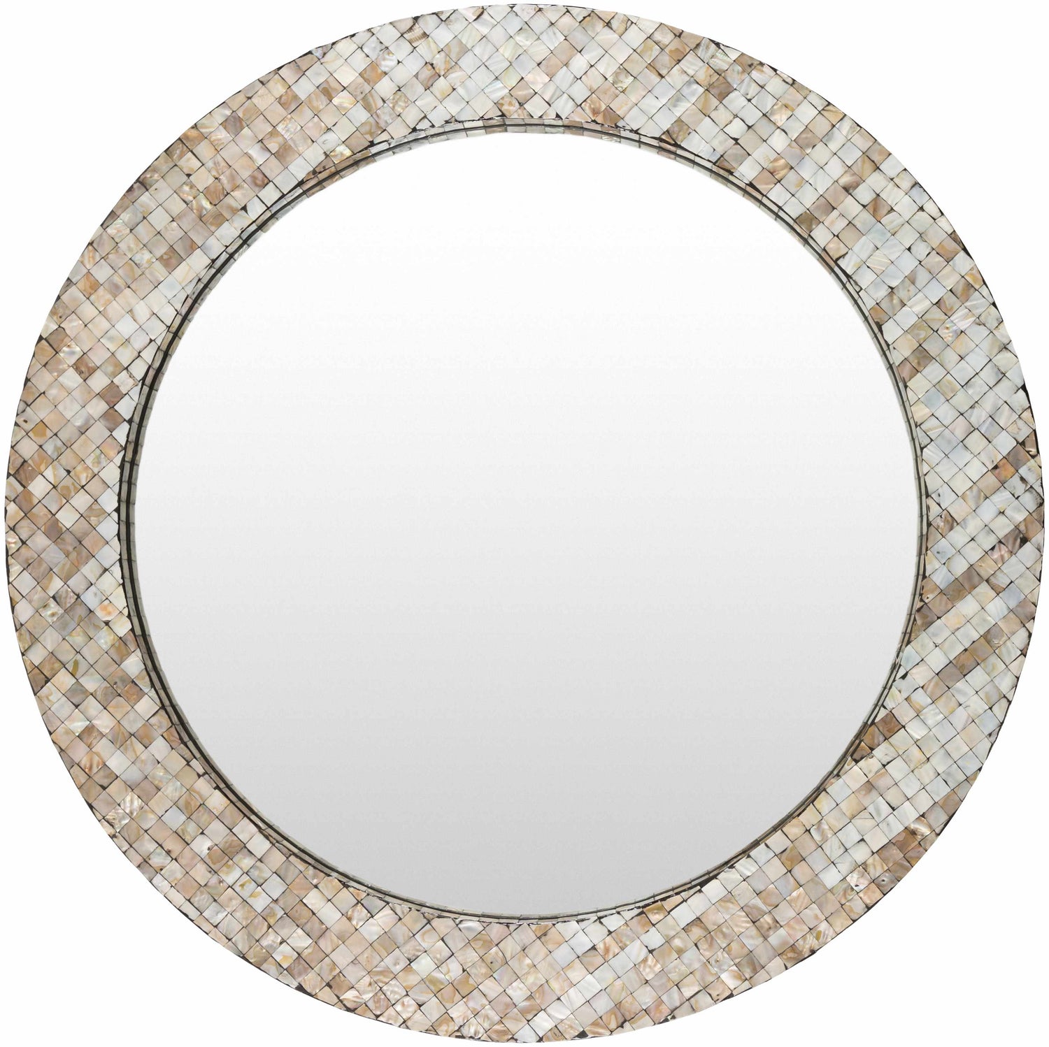 This Tuburan Mirror Mirror is the perfect piece to add a touch of global style to any room. Crafted from durable manufactured wood and Mother of Pearl, it features an eye-catching design that will bring a unique look to your space. With its versatile size and multiple orientation options, this mirror can be hung vertically or horizontally to fit any home decor. To keep it looking its best, simply wipe clean with a dry cloth. Add some international flair to your home with this beautiful Tuburan Mirror Mirror!