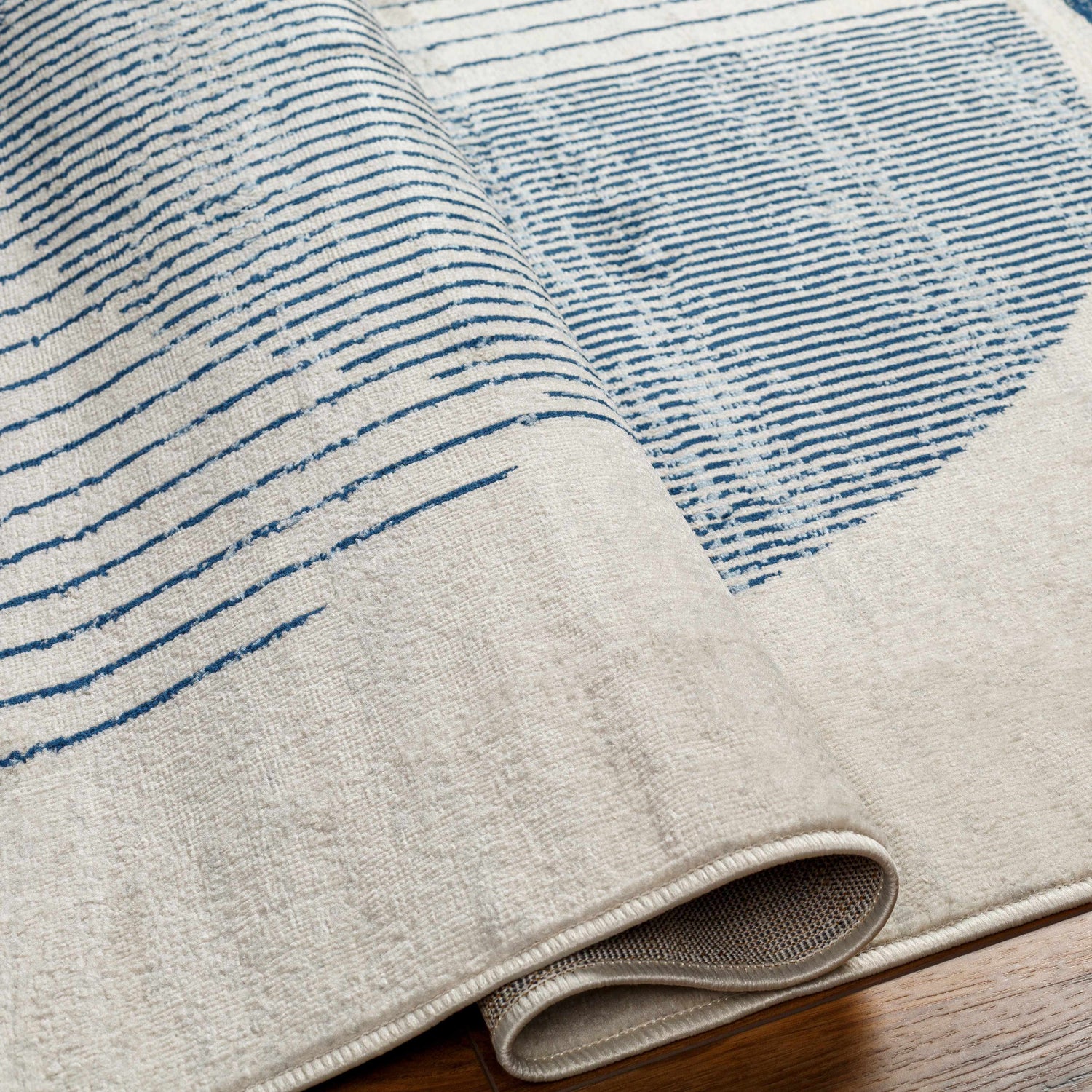The Zeke Geometric White&Blue Area Rug is the perfect addition to any modern minimalist space. The machine-woven polypropylene construction of this Turkish-made rug ensures it is both durable and comfortable, making it a great choice for high traffic areas. Its medium pile ensures your feet will remain comfortable while its minimalistic design creates a subtle yet sophisticated accent to any room. For added protection, we recommend using an area rug pad with this piece. Cleaning is easy ? just spot clean with mild detergent and you're good to go!