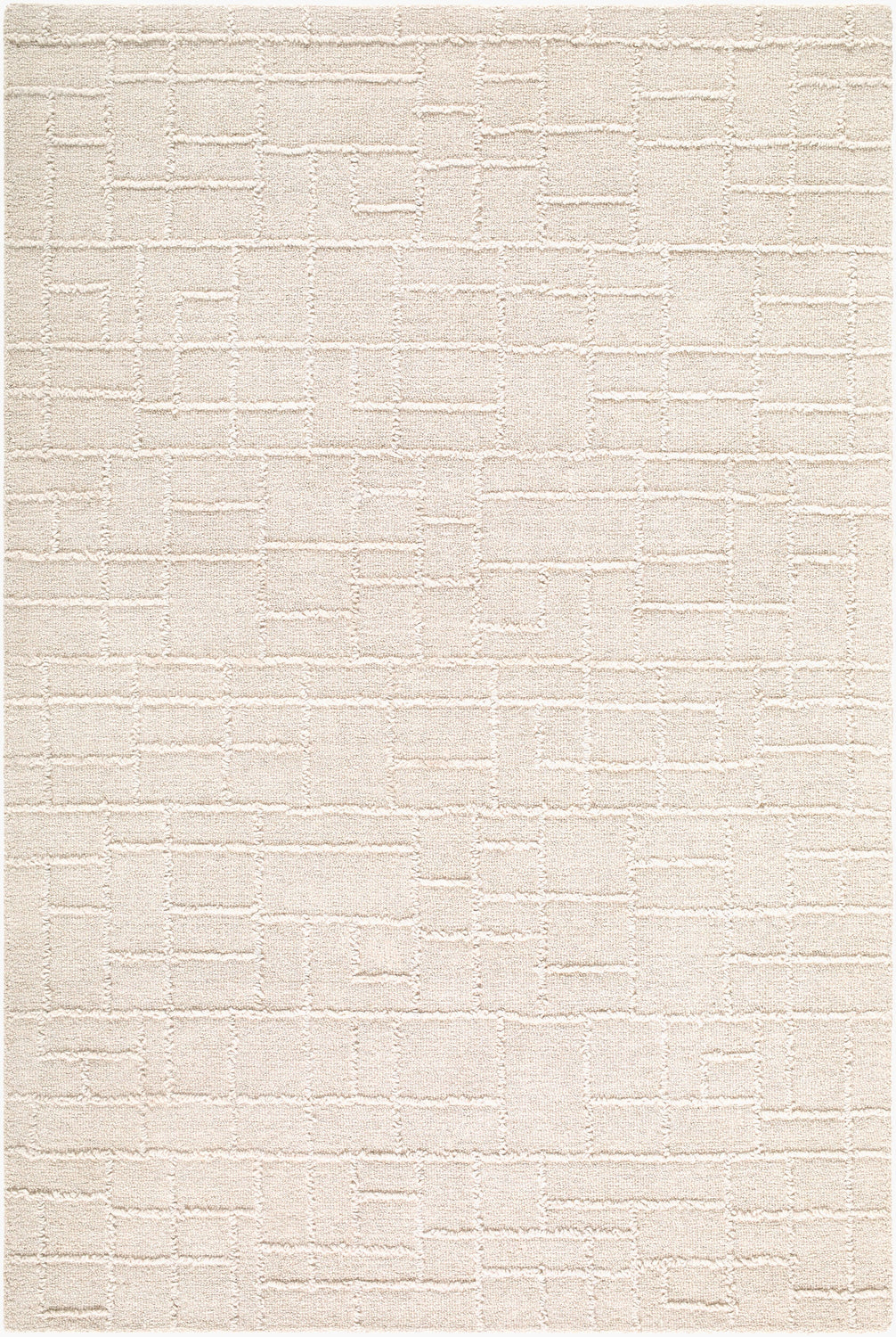 A soft cream canvas of raised geometric rectangles — the Utsmiyurt rug adds understated texture and warmth to any minimalist or modern space.