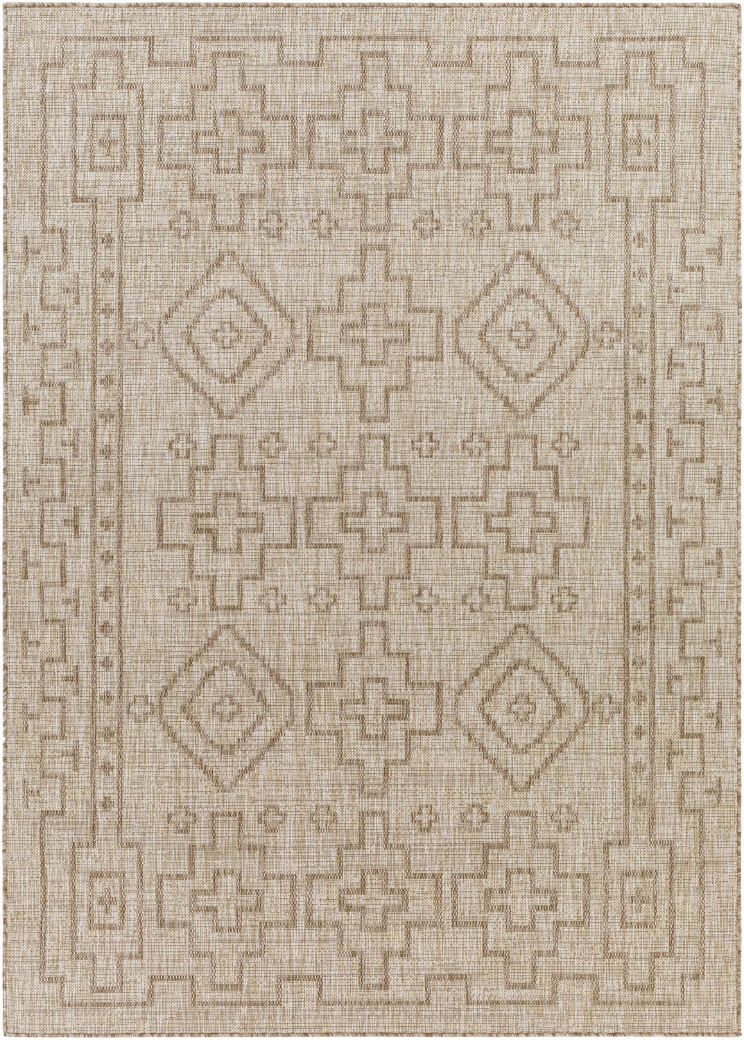 This stylish and versatile Vinings Indoor & Outdoor Area Rug is perfect for any outdoor or indoor space. Made with 100% Polypropylene, this machine-woven rug is highly durable and designed to withstand high foot traffic. It's also outdoor safe, so you can keep it in your patio or garden area without worrying about weather damage. Plus, the no-pile construction makes it easy to clean - just hose off with water and hang to dry! This Turkish-made piece offers a global style that will add an eye-catching touch to any room in your home. For best results, we recommend pairing it with a rug pad for added comfort and stability.