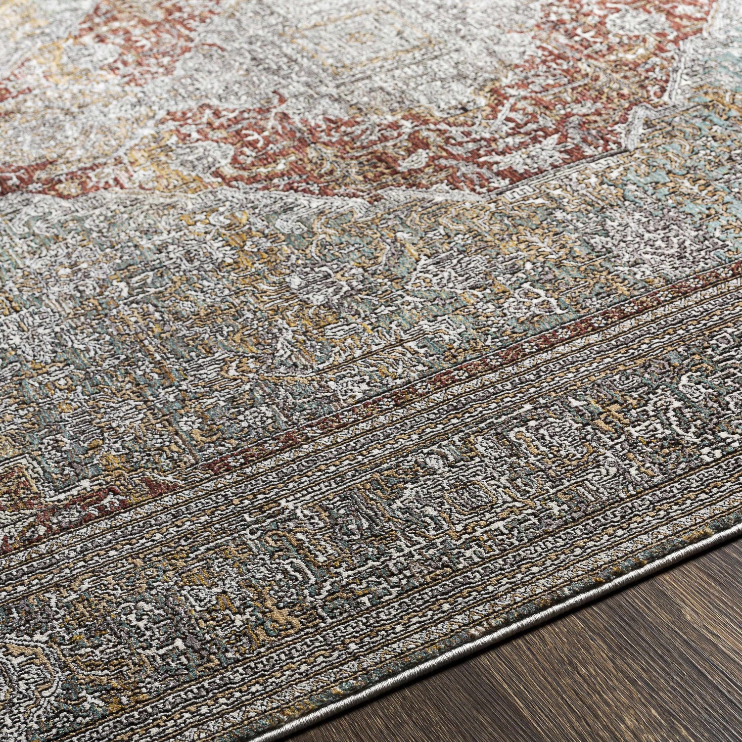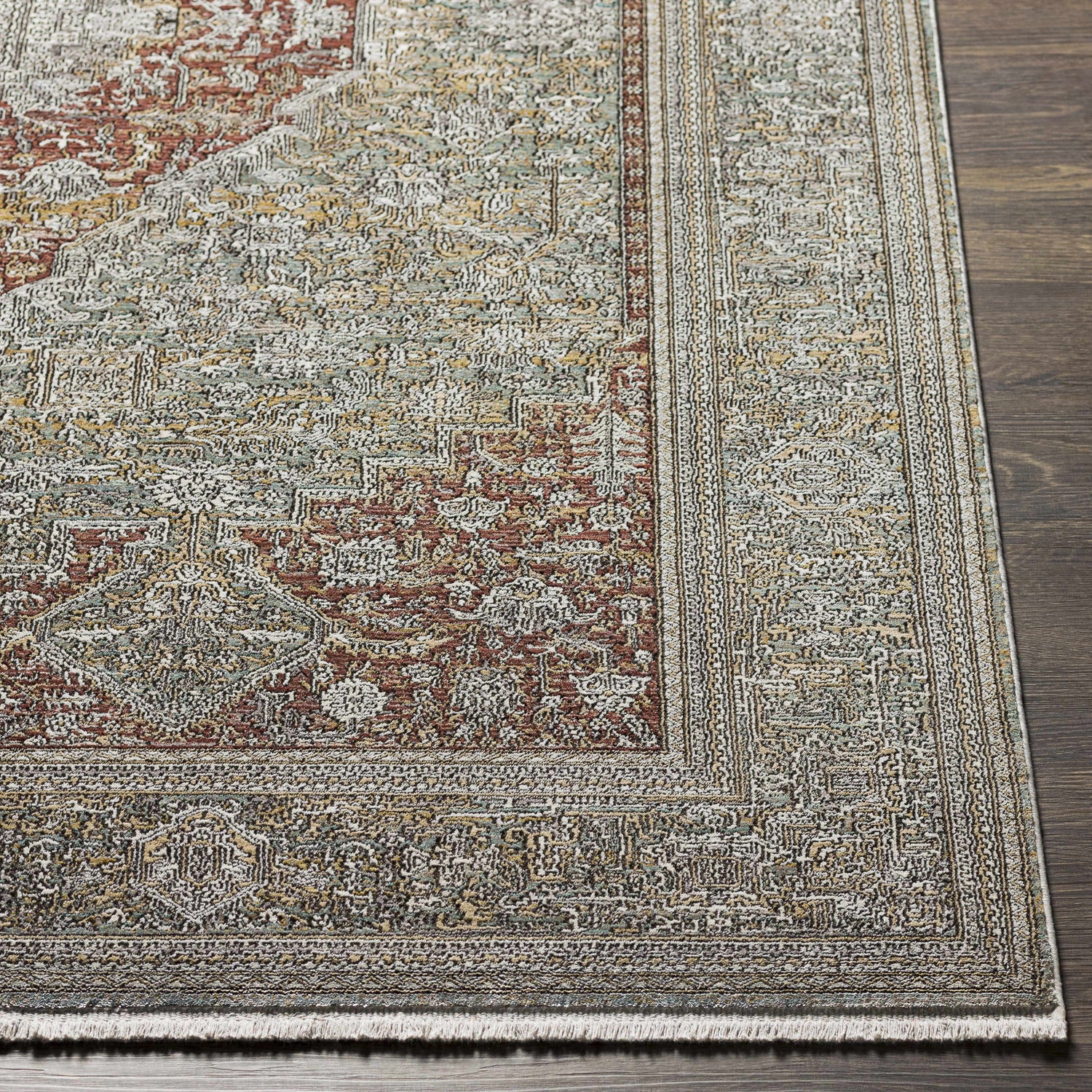 Introducing the Vredefort Area Rug! This updated traditional style rug is an elegant addition to any room. Its machine woven construction and medium pile make it perfect for high traffic areas, so you can enjoy its beautiful pattern for years to come. Crafted from polyester, this rug is durable and soft underfoot. The fringe adds a unique touch to complete the look. To keep this rug looking pristine, simply spot clean with mild detergent as needed. For added protection, we recommend using a rug pad (sold separately).