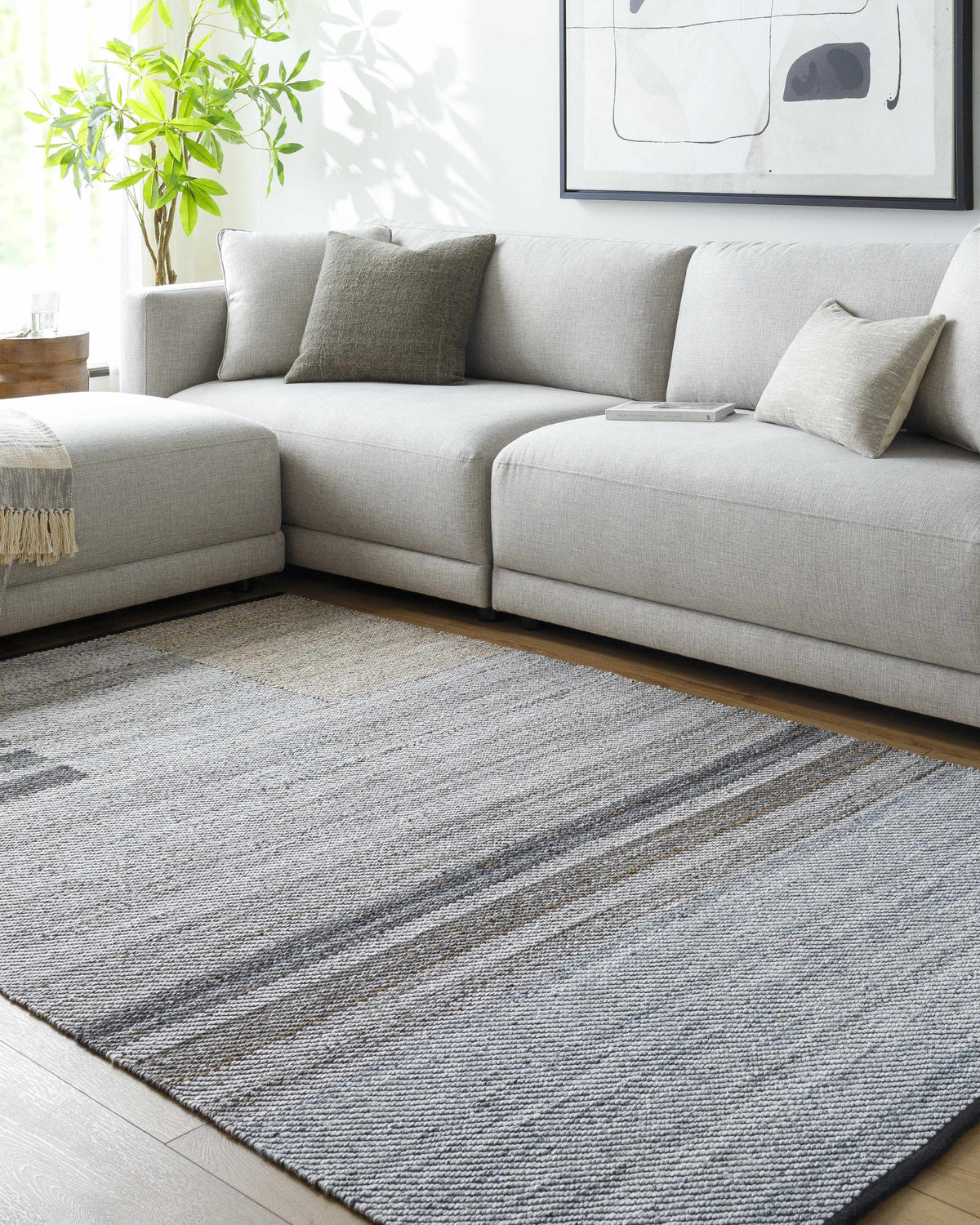 When selecting a living room rug, choose one that anchors your furniture by either placing all the legs on the rug or just the front legs, which helps define the seating area and enhances the room’s acoustics.