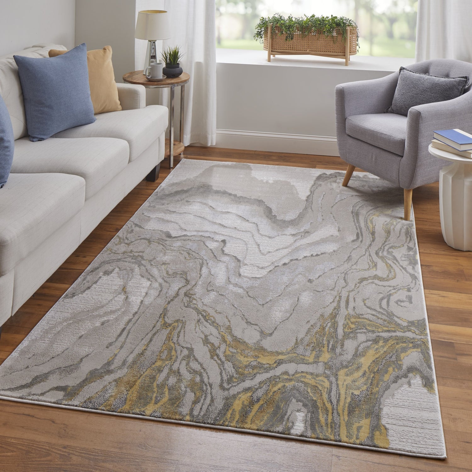 Feizy Waldor Modern Watercolor - Gold/Ivory/Gray Area Rug