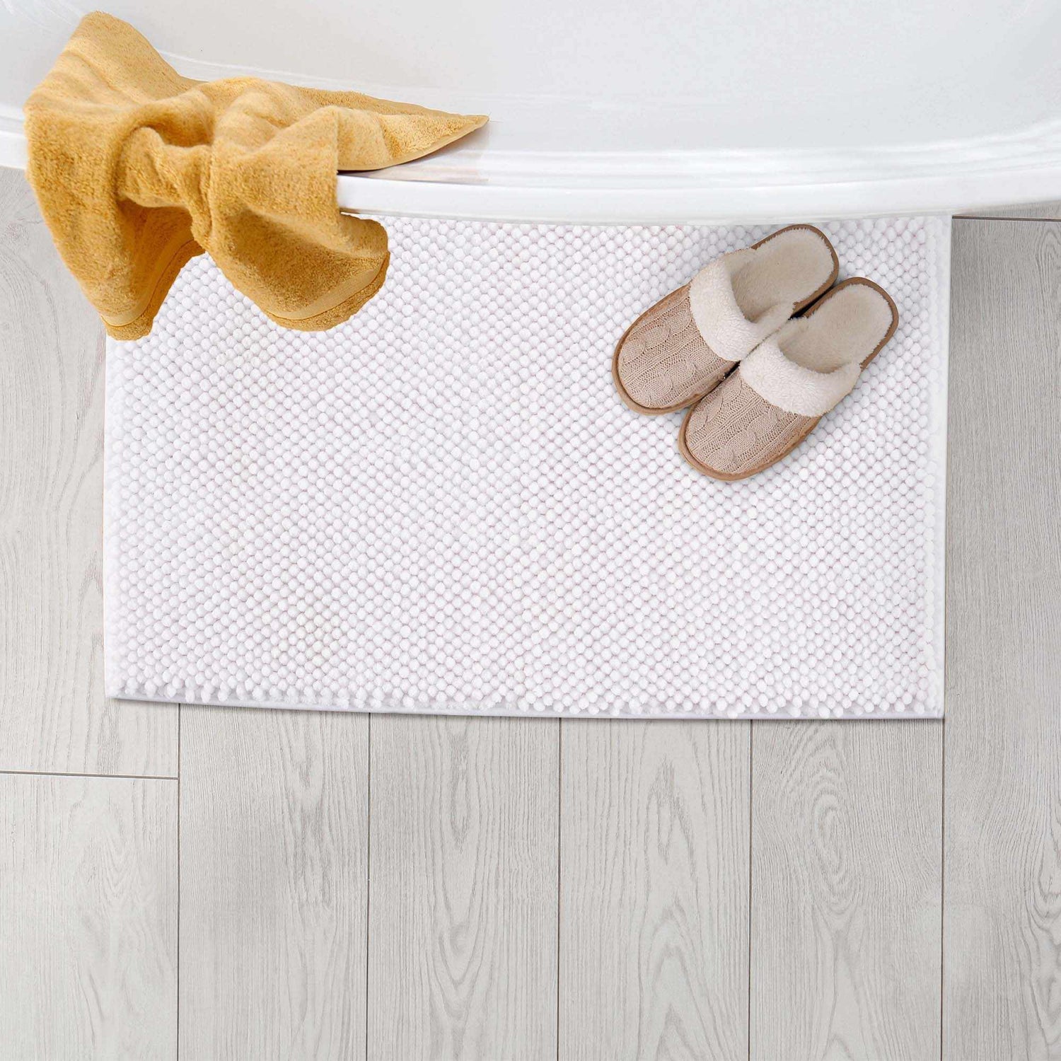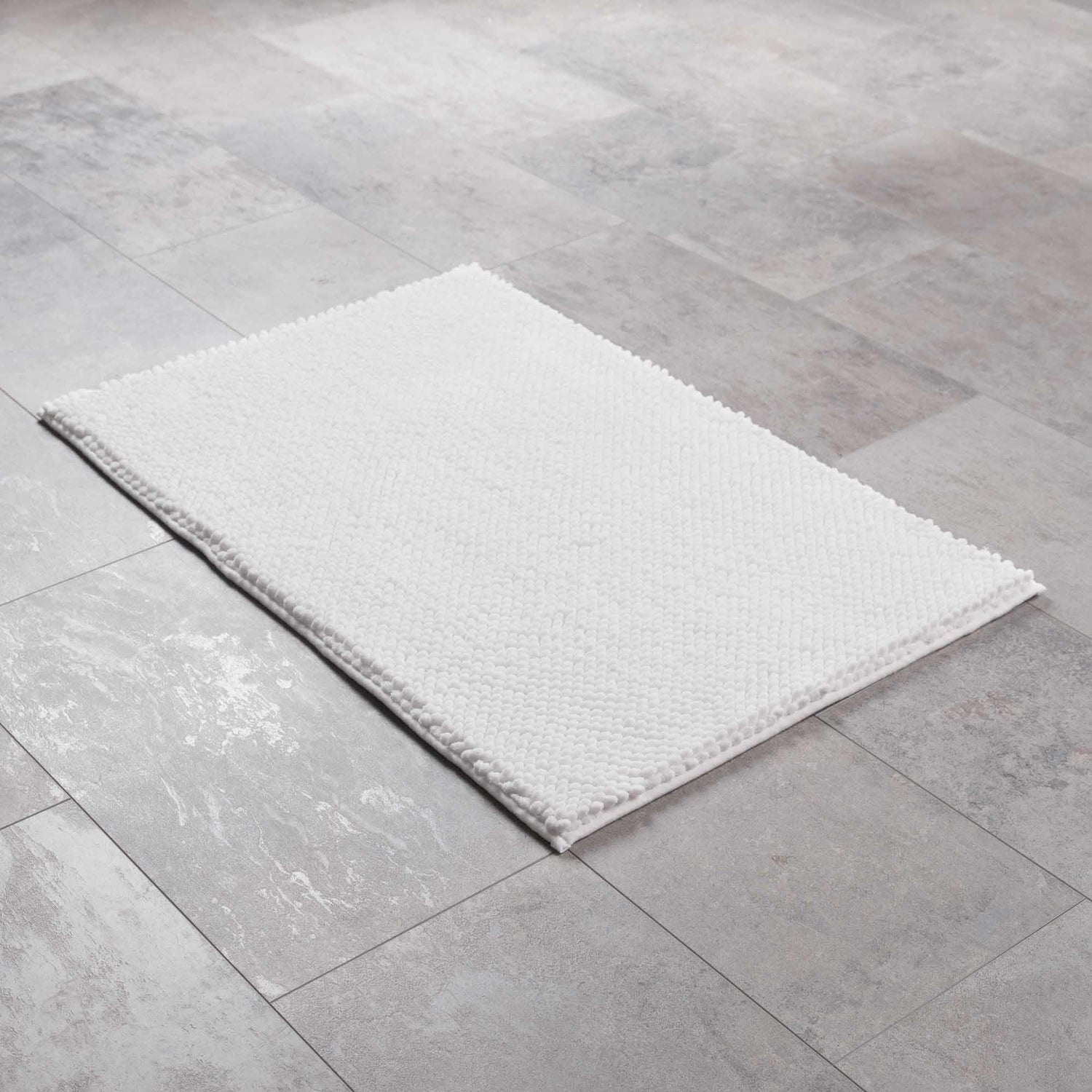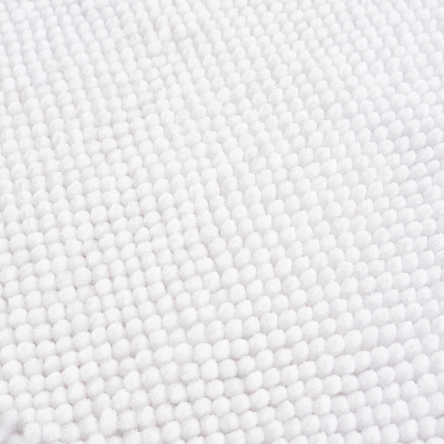 Enhance your bathroom's comfort and style with this white bath mat. Its plush, absorbent design is perfect for stepping out of the shower or bath. The mat's washable feature ensures easy cleaning and durability. Ideal for any bathroom, it offers a blend of luxury, practicality, and safety.
