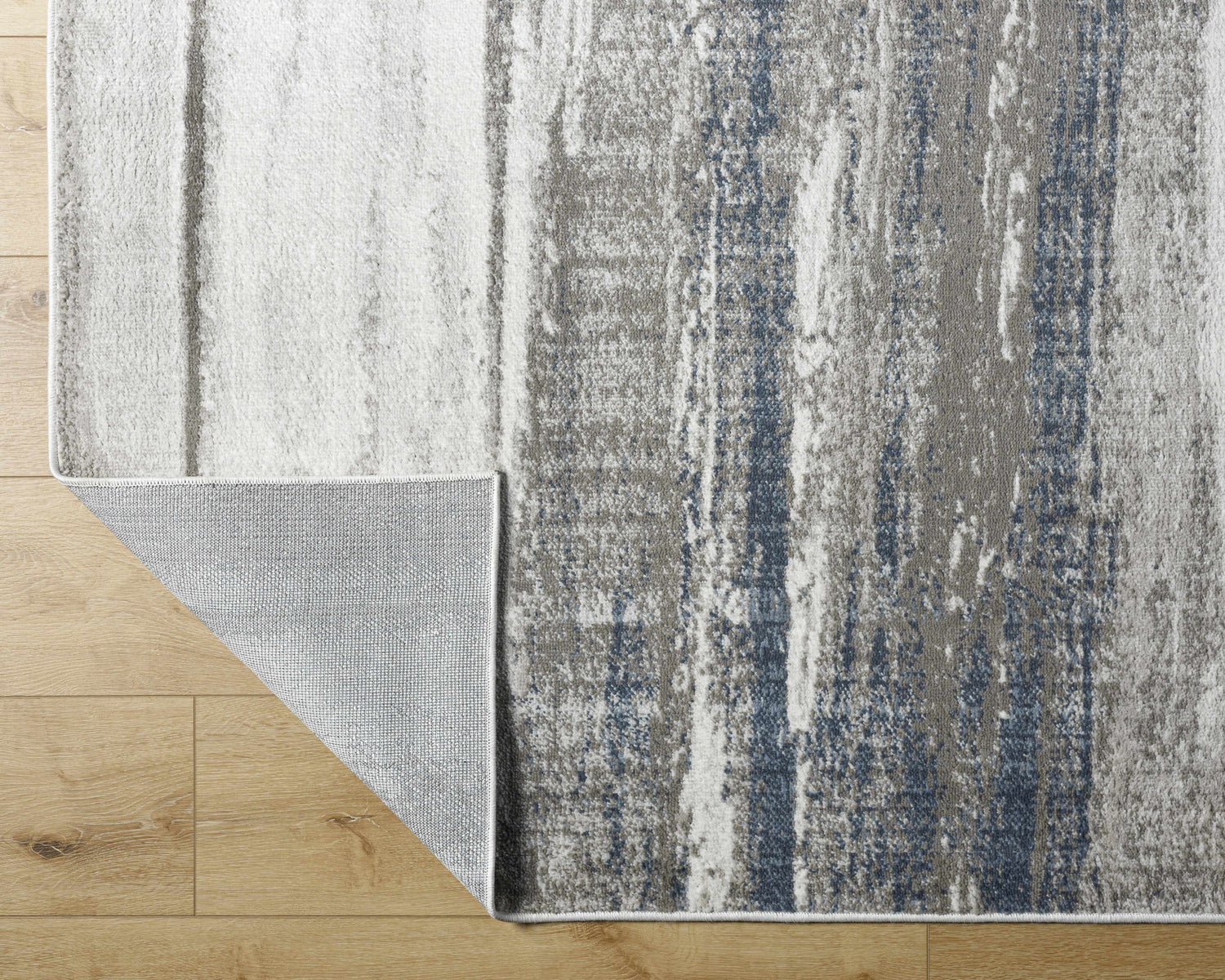 The Yuina Light Gray Area Rug brings a cool, painterly energy to any room with its abstract brushstroke design in soft gray, misty white, and streaks of slate blue. The vertical abstract pattern has a naturally distressed, faded quality — like a watercolor painting that's been gently worn in — making it feel both artistic and effortlessly relaxed. Machine-made in Turkey from durable polypropylene, this rug is built for real life: it's stain resistant, easy to spot clean, and holds up well in high-traffic areas like living rooms, hallways, and dining spaces. The medium pile (0.24 inches) offers a comfortable underfoot feel without being too thick to slide furniture over. The cool gray and blue palette is incredibly versatile — it pairs beautifully with white walls, navy accents, warm wood floors, or even bold jewel-toned furniture. Whether you're going for a modern minimalist look or a transitional space that blends classic and contemporary, the Yuina delivers quiet sophistication without trying too hard. Use with a rug pad for best results.